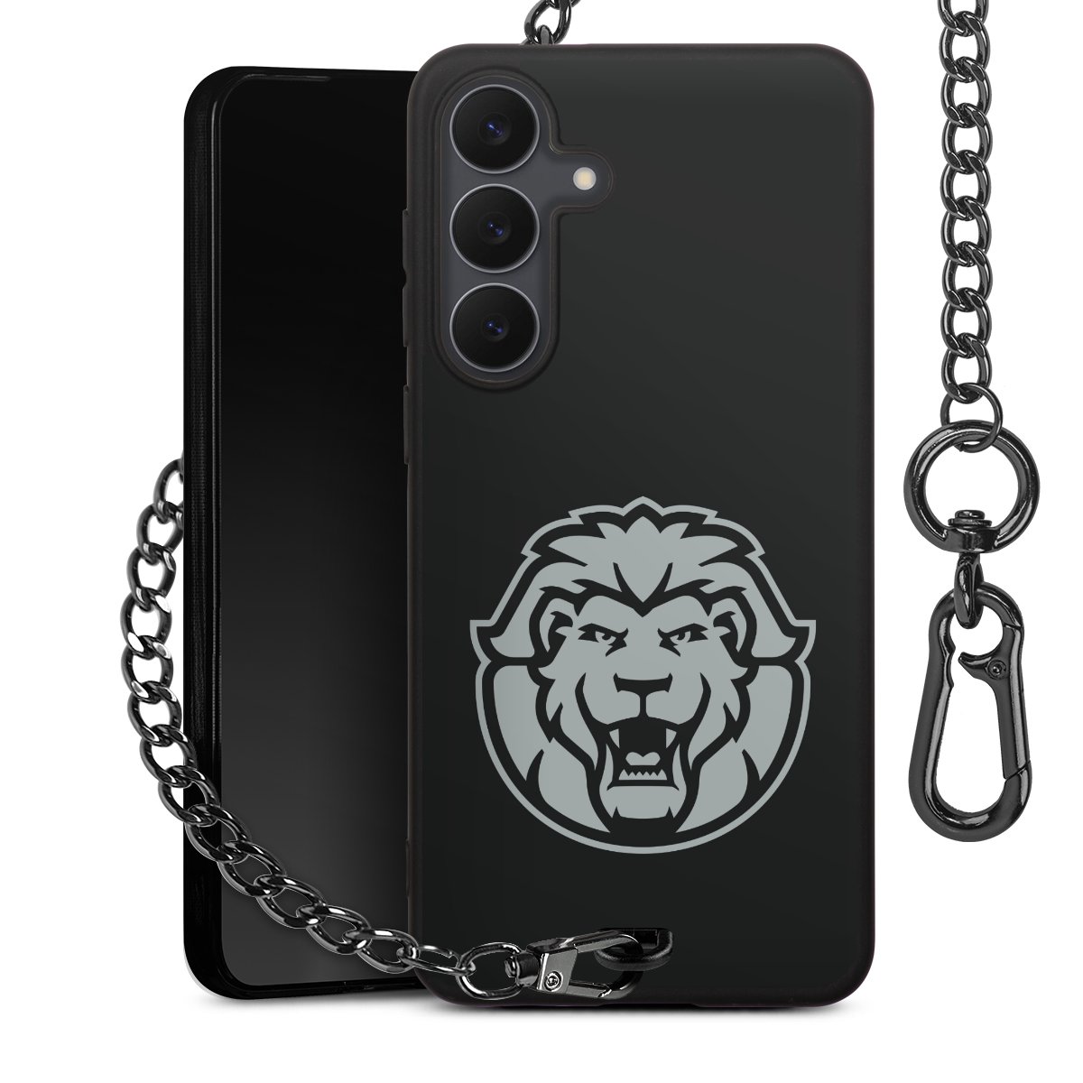 - Mattschwarze Handyhülle mit Metallkette