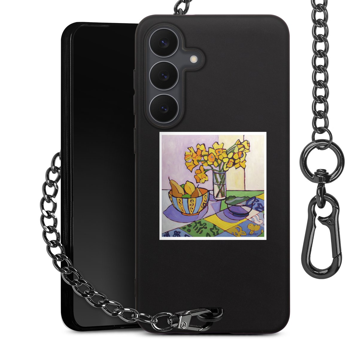 - Mattschwarze Handyhülle mit Metallkette