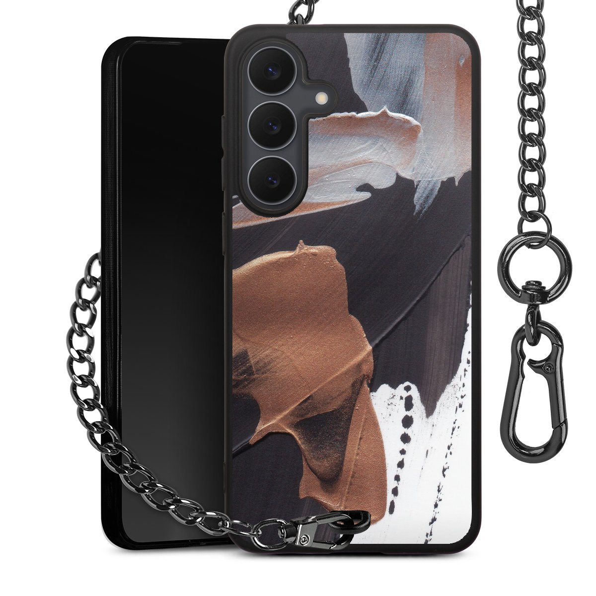 • Mattschwarze Handyhülle mit Metallkette