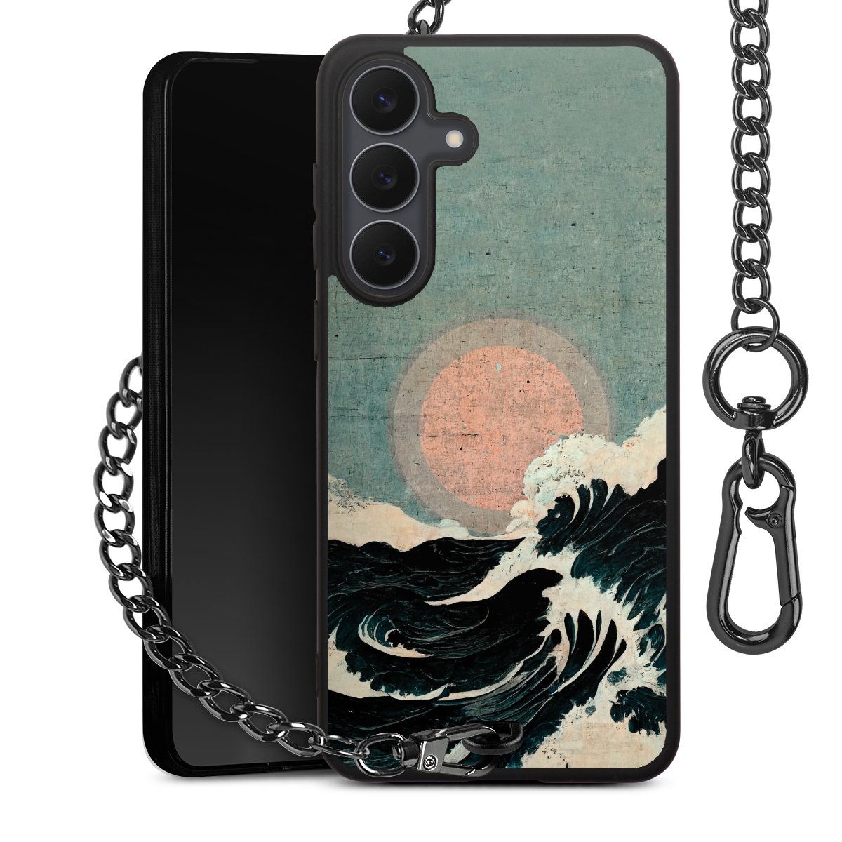 • Mattschwarze Handyhülle mit Metallkette
