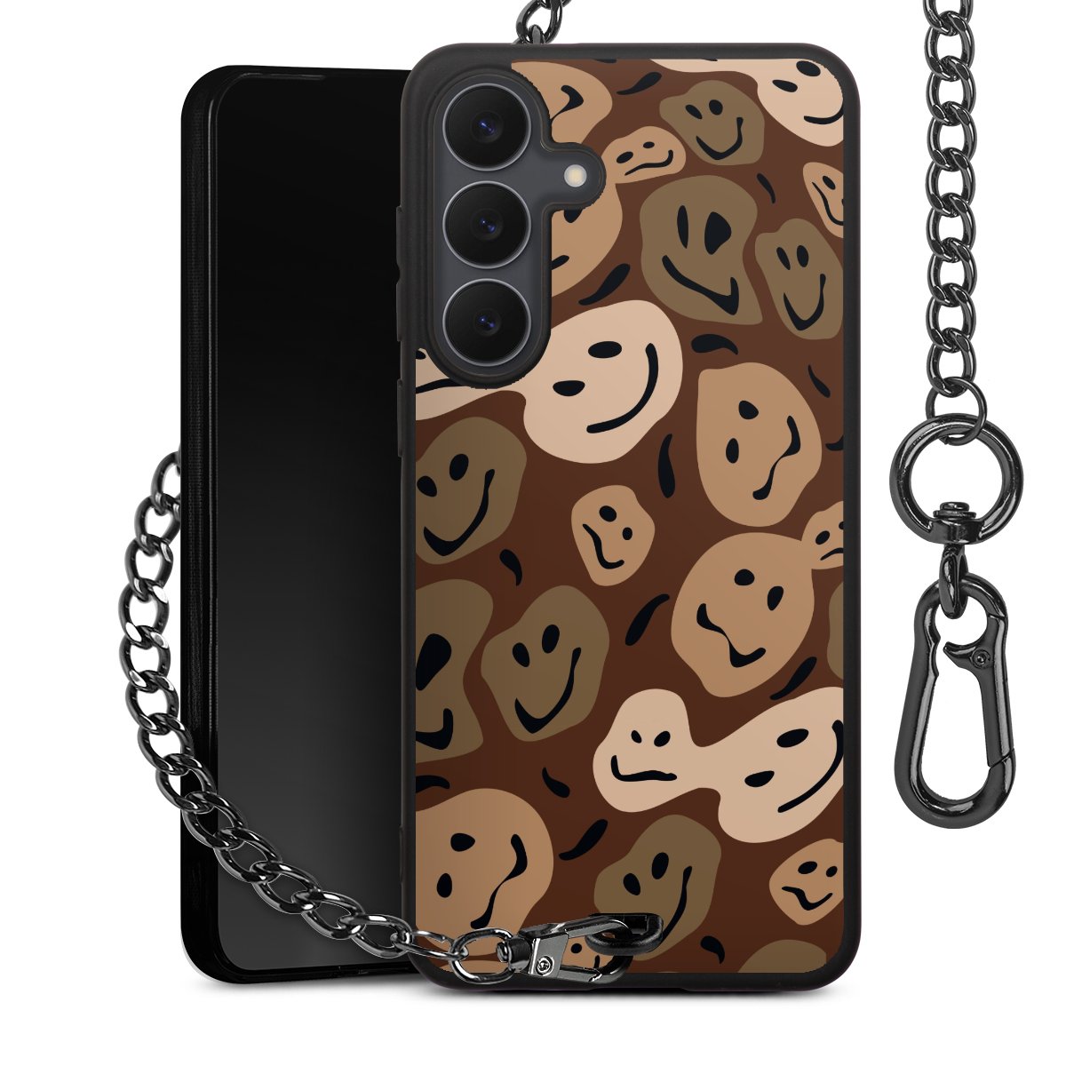 - Mattschwarze Handyhülle mit Metallkette