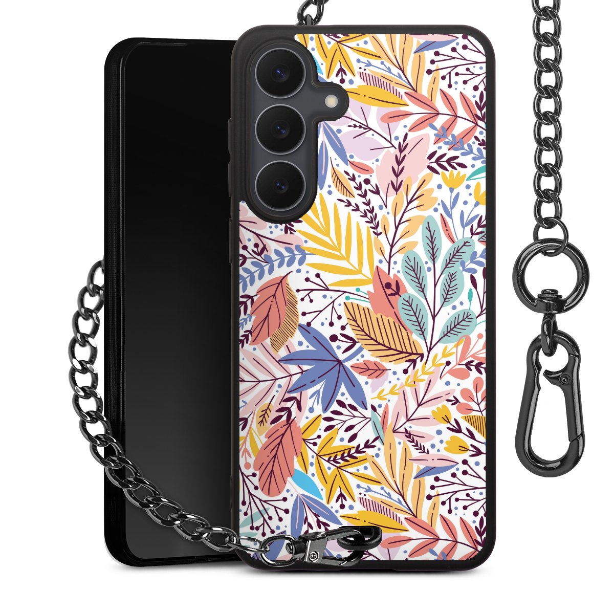 • Mattschwarze Handyhülle mit Metallkette