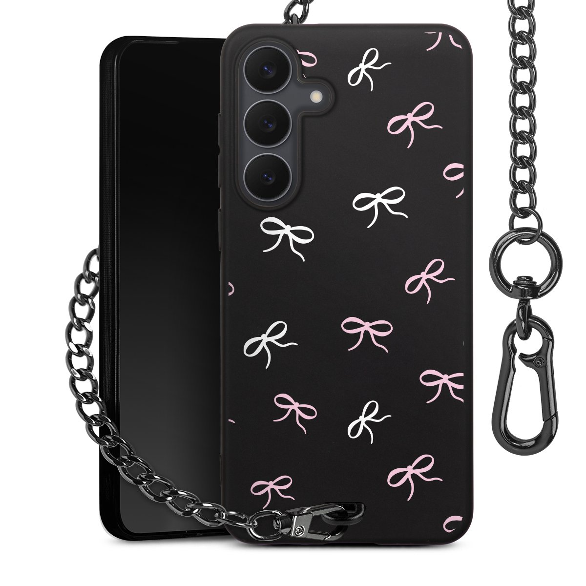 - Mattschwarze Handyhülle mit Metallkette