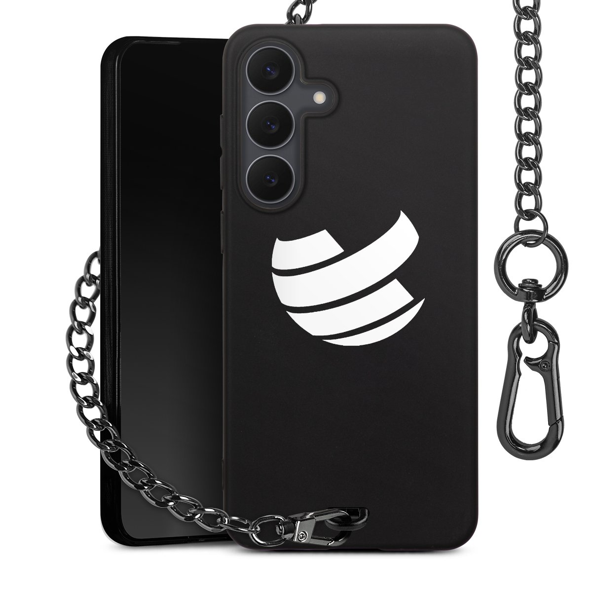 • Mattschwarze Handyhülle mit Metallkette