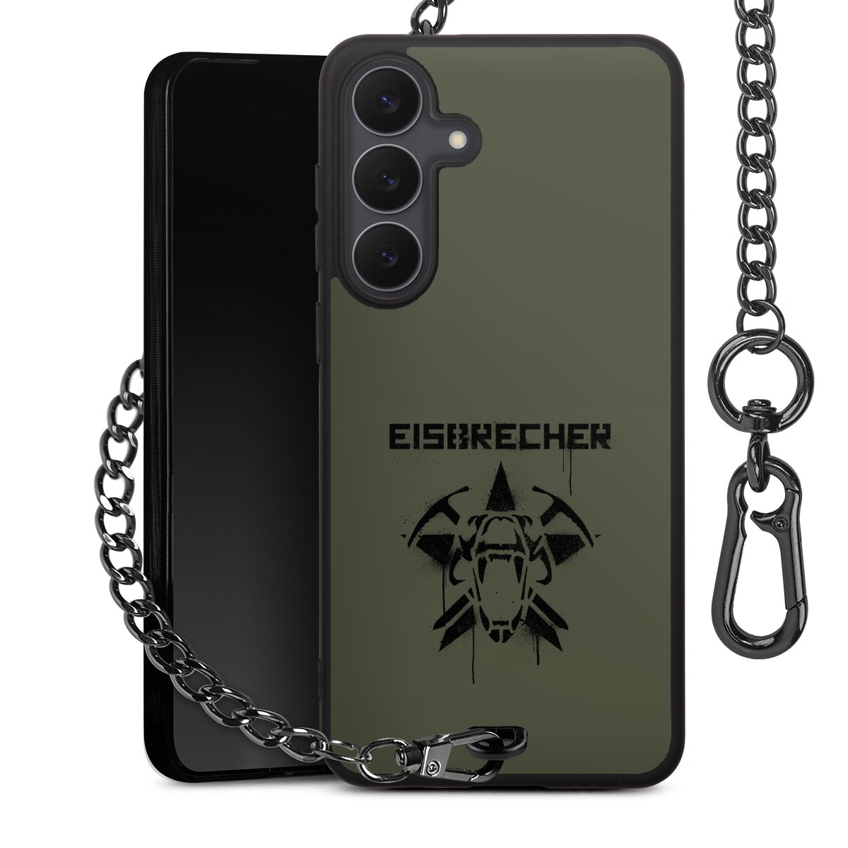 Die mattschwarze Silikon-Handyhülle besteht aus robustem TPU (thermoplastisches Polyurethan). Sie ist flexibel und schützt Dein Smartphone vor Stößen und Kratzern. Die Kette sowie der Karabinerhaken sind aus Metall in Gunmetal-Optik gefertigt. Für dieses Produkt kommen ausschließlich TÜV-geprüfte Materialien zum Einsatz.
