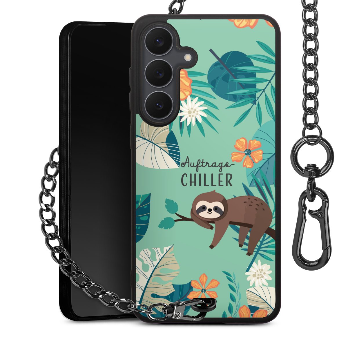 • Mattschwarze Handyhülle mit Metallkette