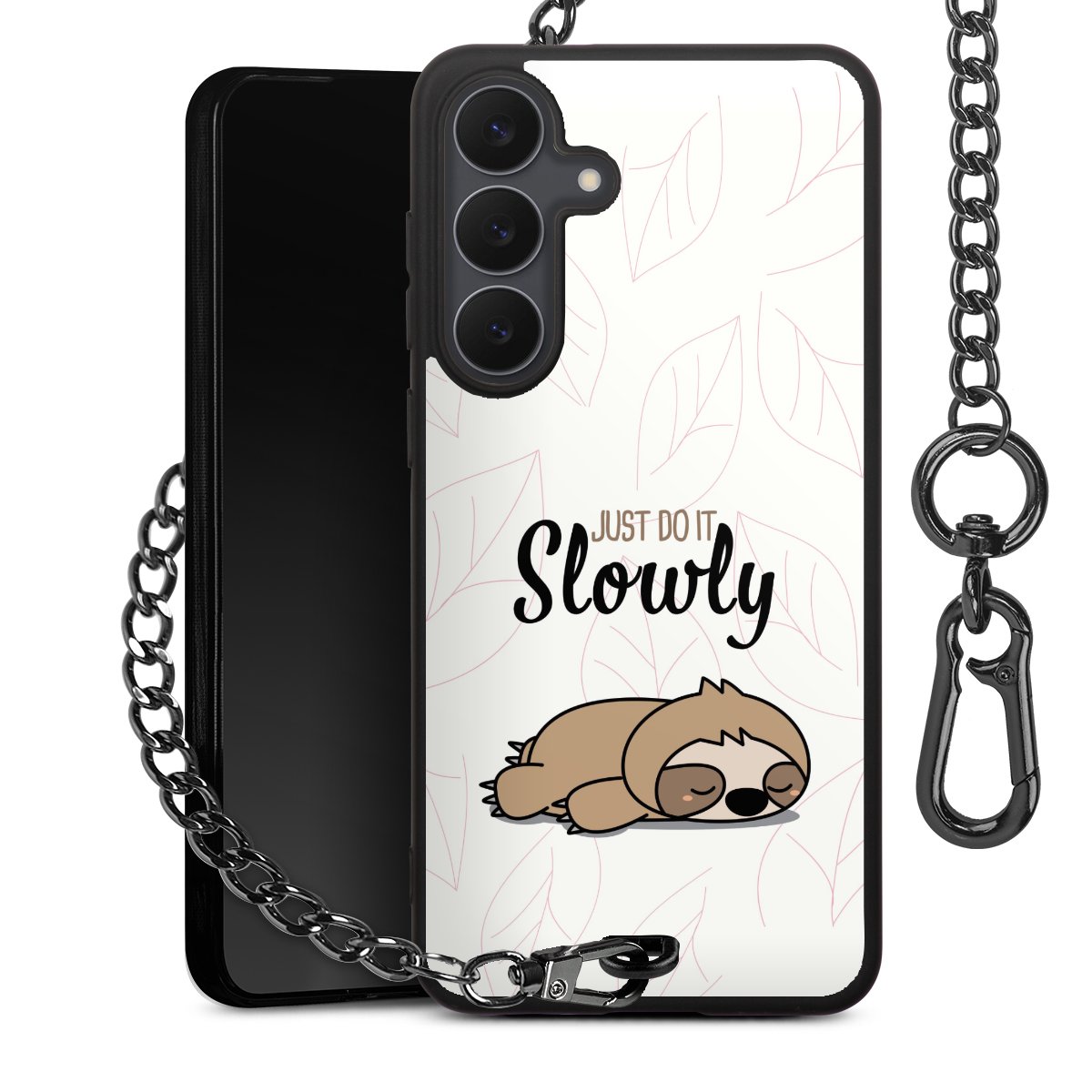 - Mattschwarze Handyhülle mit Metallkette