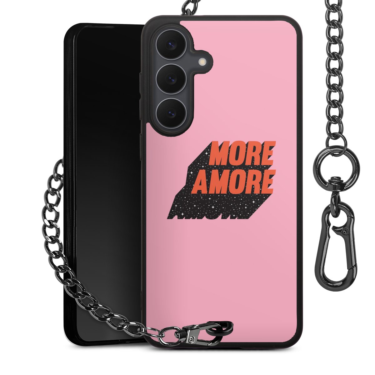 • Mattschwarze Handyhülle mit Metallkette