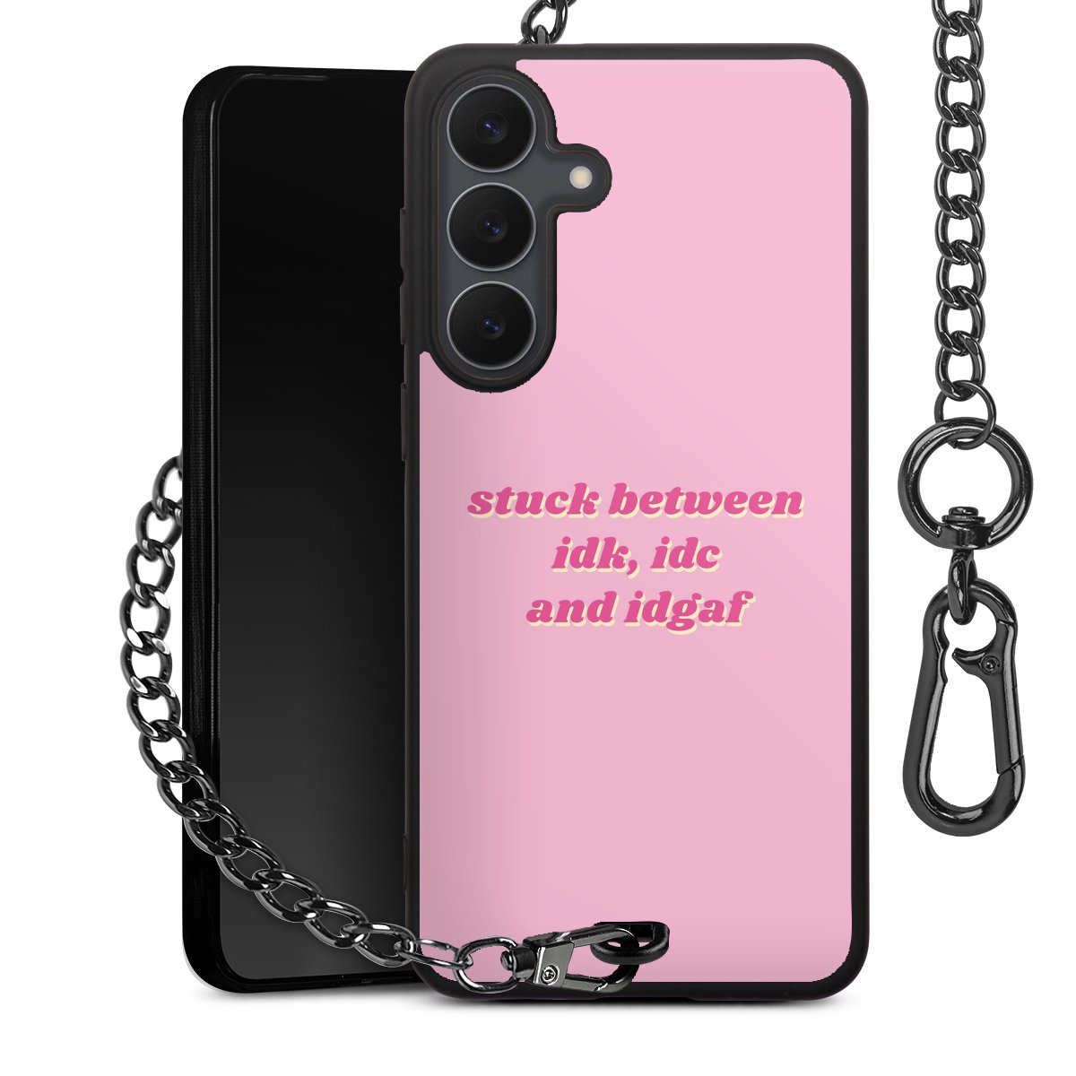 - Mattschwarze Handyhülle mit Metallkette