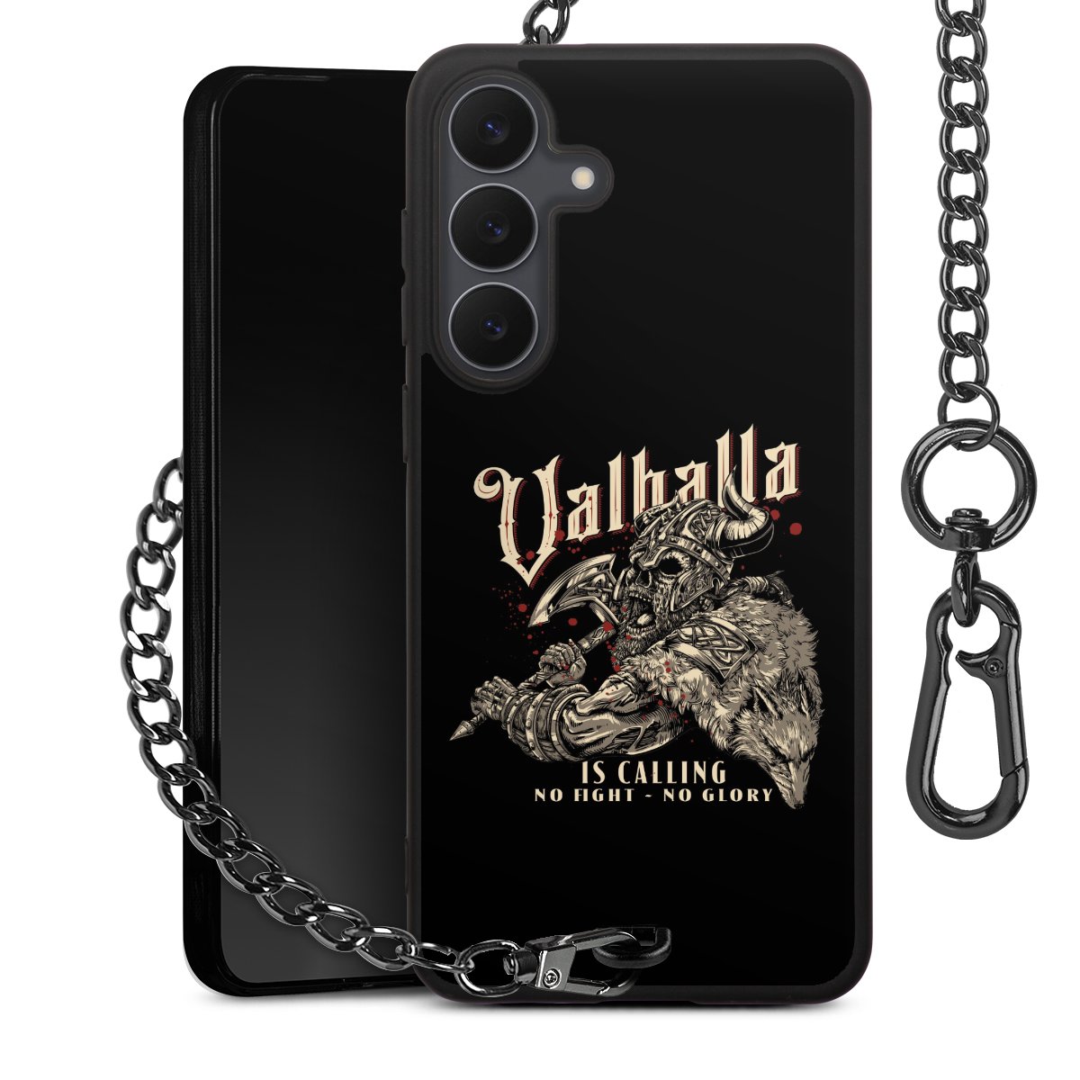• Mattschwarze Handyhülle mit Metallkette