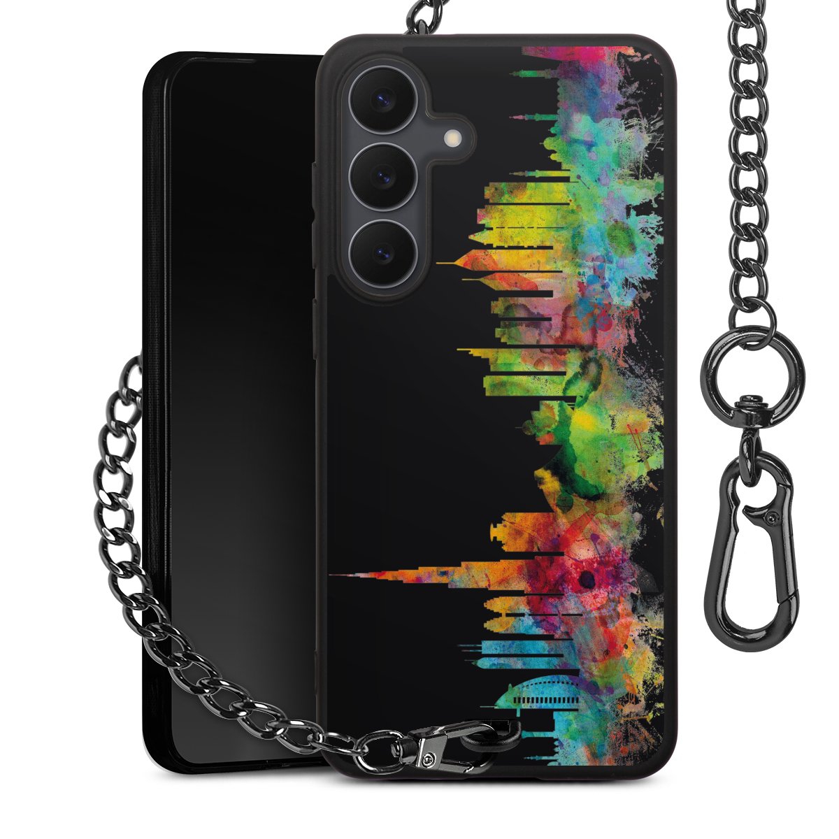 • Mattschwarze Handyhülle mit Metallkette