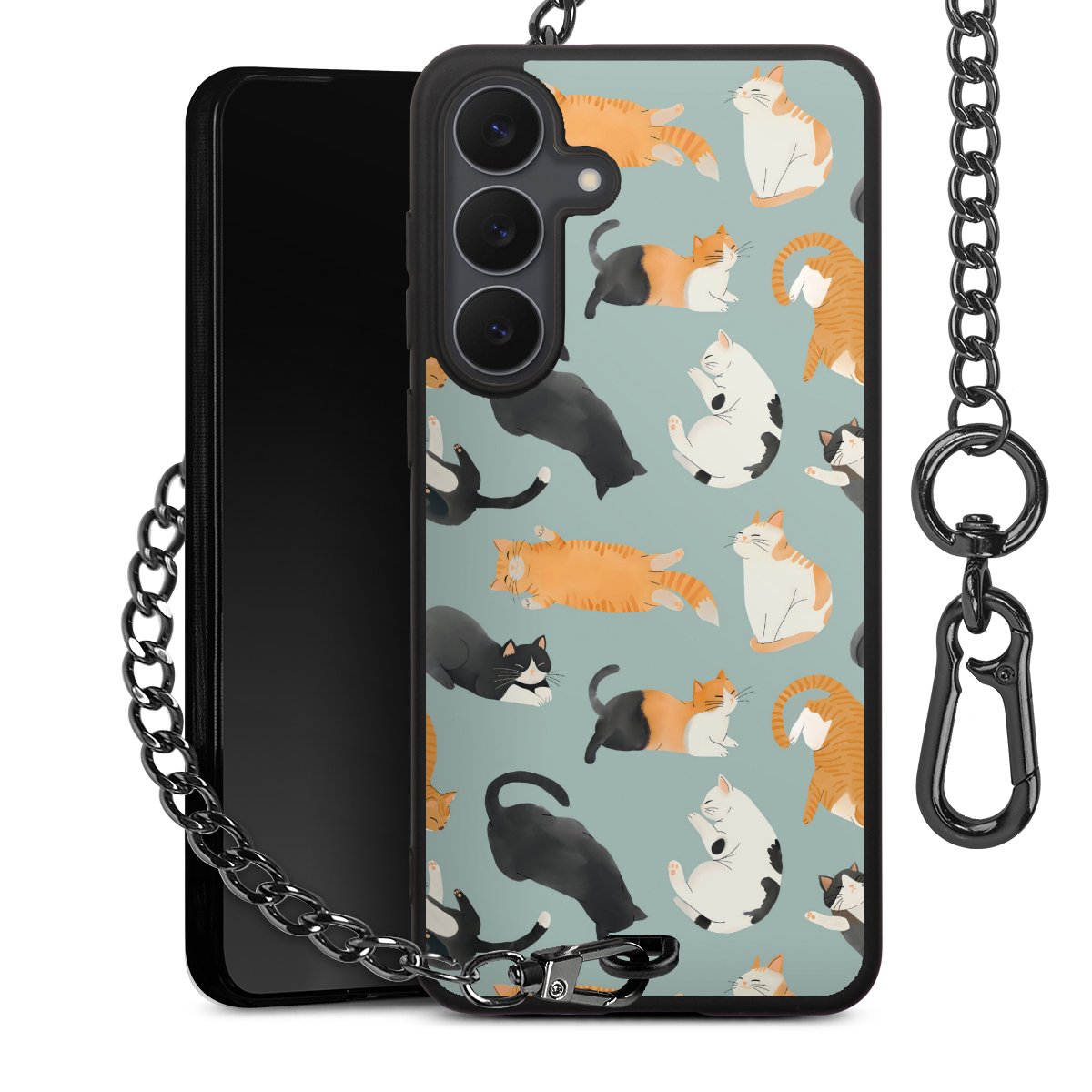 • Mattschwarze Handyhülle mit Metallkette