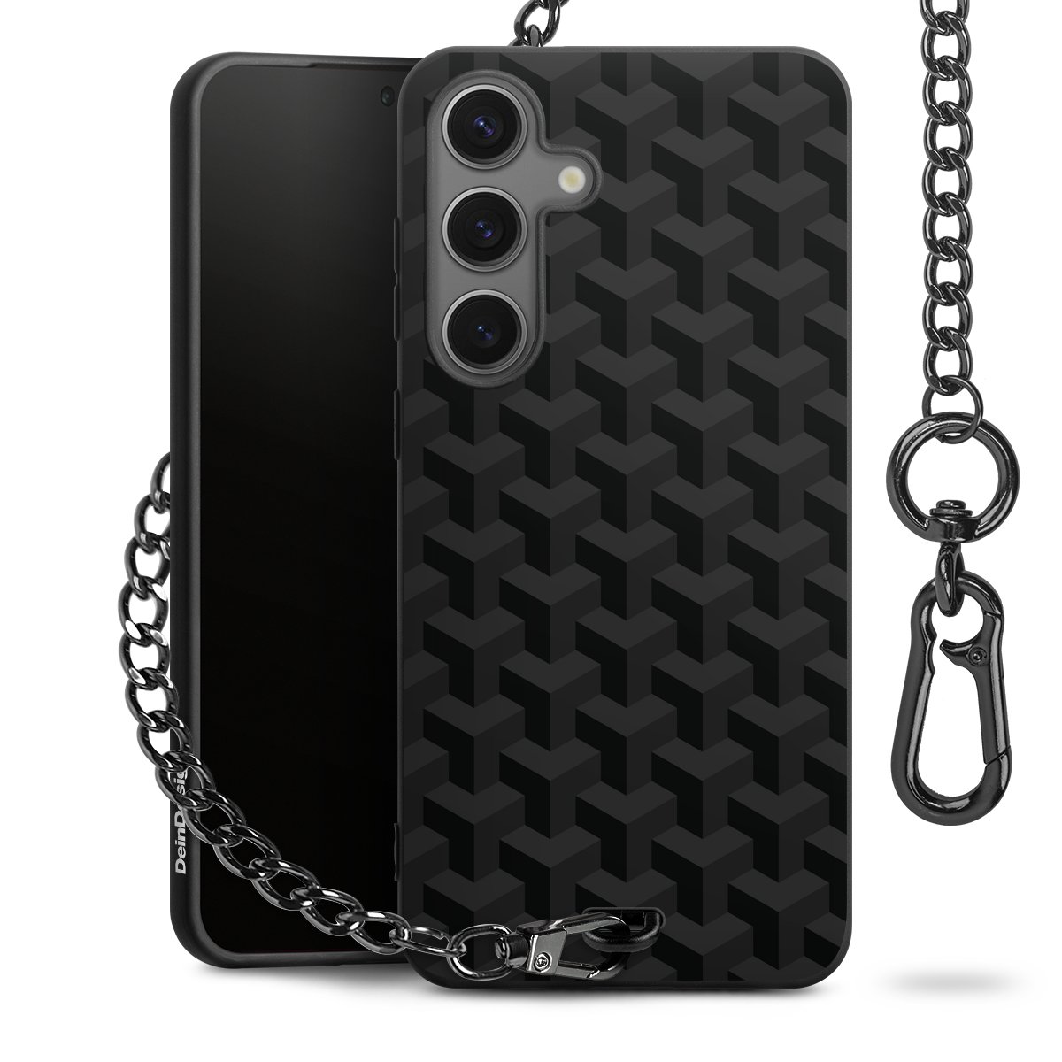 • Mattschwarze Handyhülle mit Metallkette