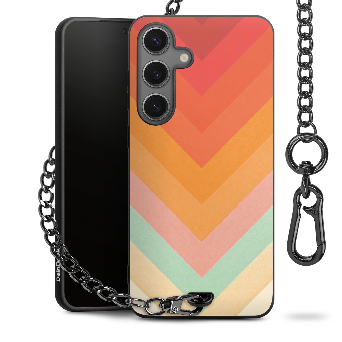 • Mattschwarze Handyhülle mit Metallkette