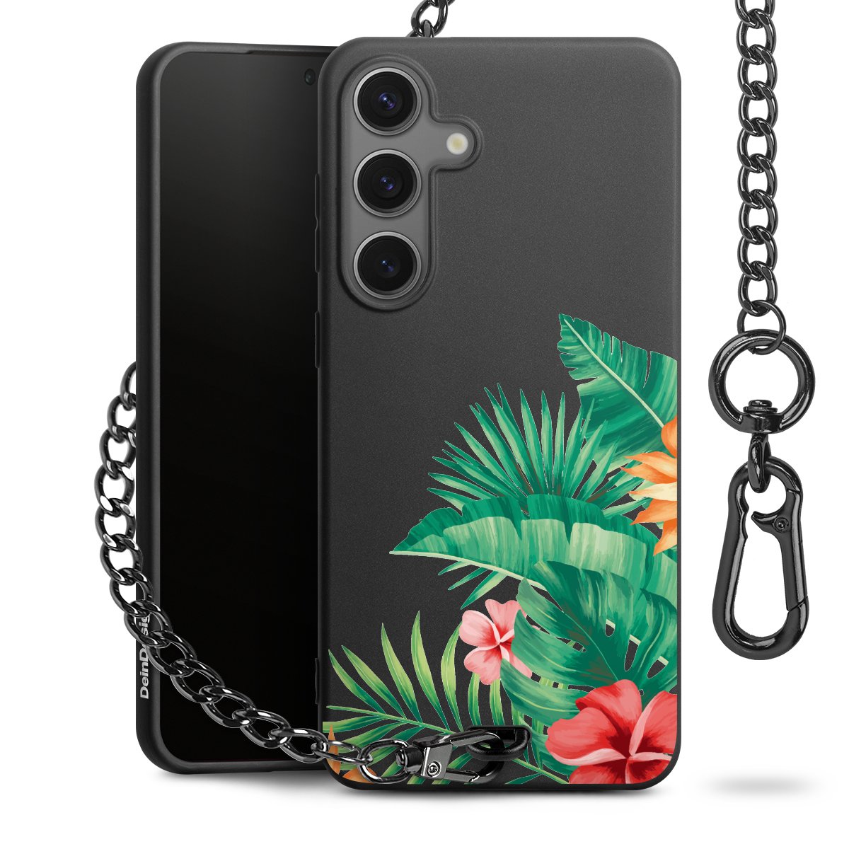 - Mattschwarze Handyhülle mit Metallkette