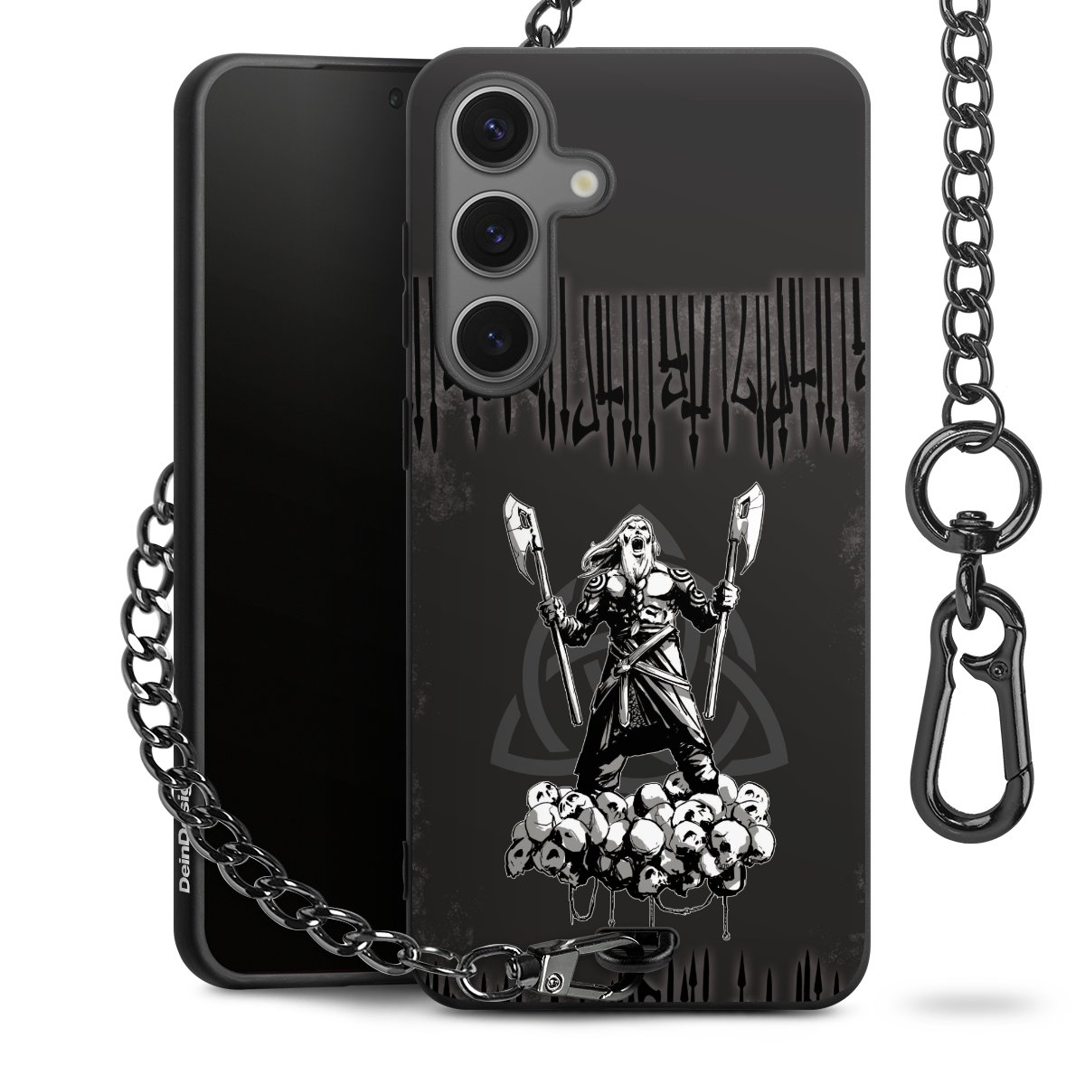 Die mattschwarze Silikon-Handyhülle besteht aus robustem TPU (thermoplastisches Polyurethan). Sie ist flexibel und schützt Dein Smartphone vor Stößen und Kratzern. Die Kette sowie der Karabinerhaken sind aus Metall in Gunmetal-Optik gefertigt. Für dieses Produkt kommen ausschließlich TÜV-geprüfte Materialien zum Einsatz.