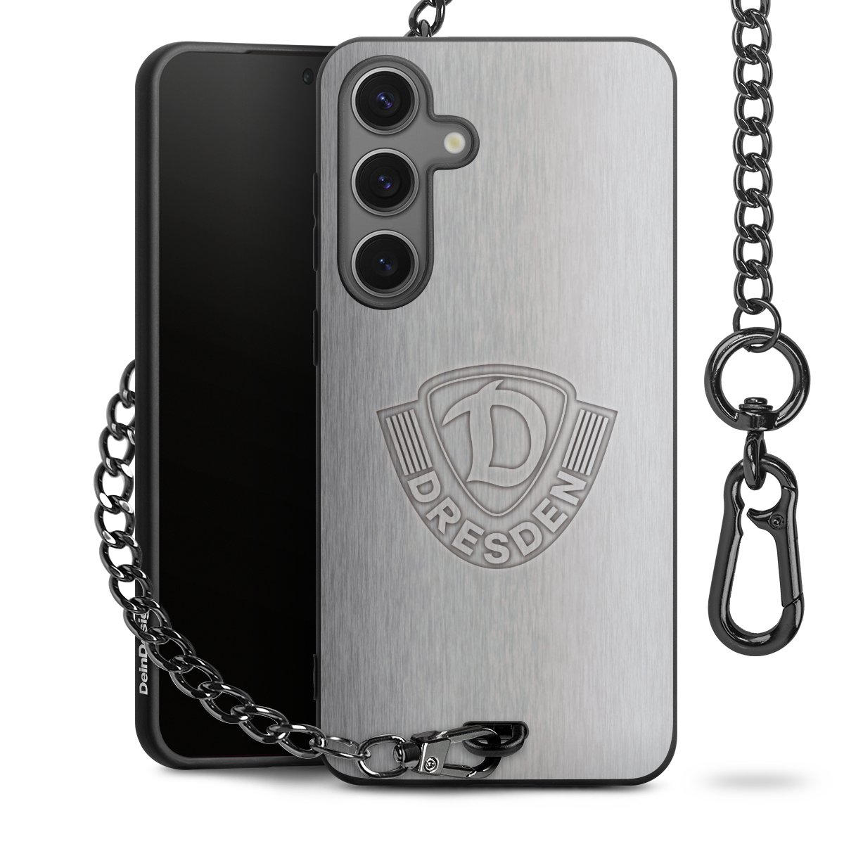 Die mattschwarze Silikon-Handyhülle besteht aus robustem TPU (thermoplastisches Polyurethan). Sie ist flexibel und schützt Dein Smartphone vor Stößen und Kratzern. Die Kette sowie der Karabinerhaken sind aus Metall in Gunmetal-Optik gefertigt. Für dieses Produkt kommen ausschließlich TÜV-geprüfte Materialien zum Einsatz.