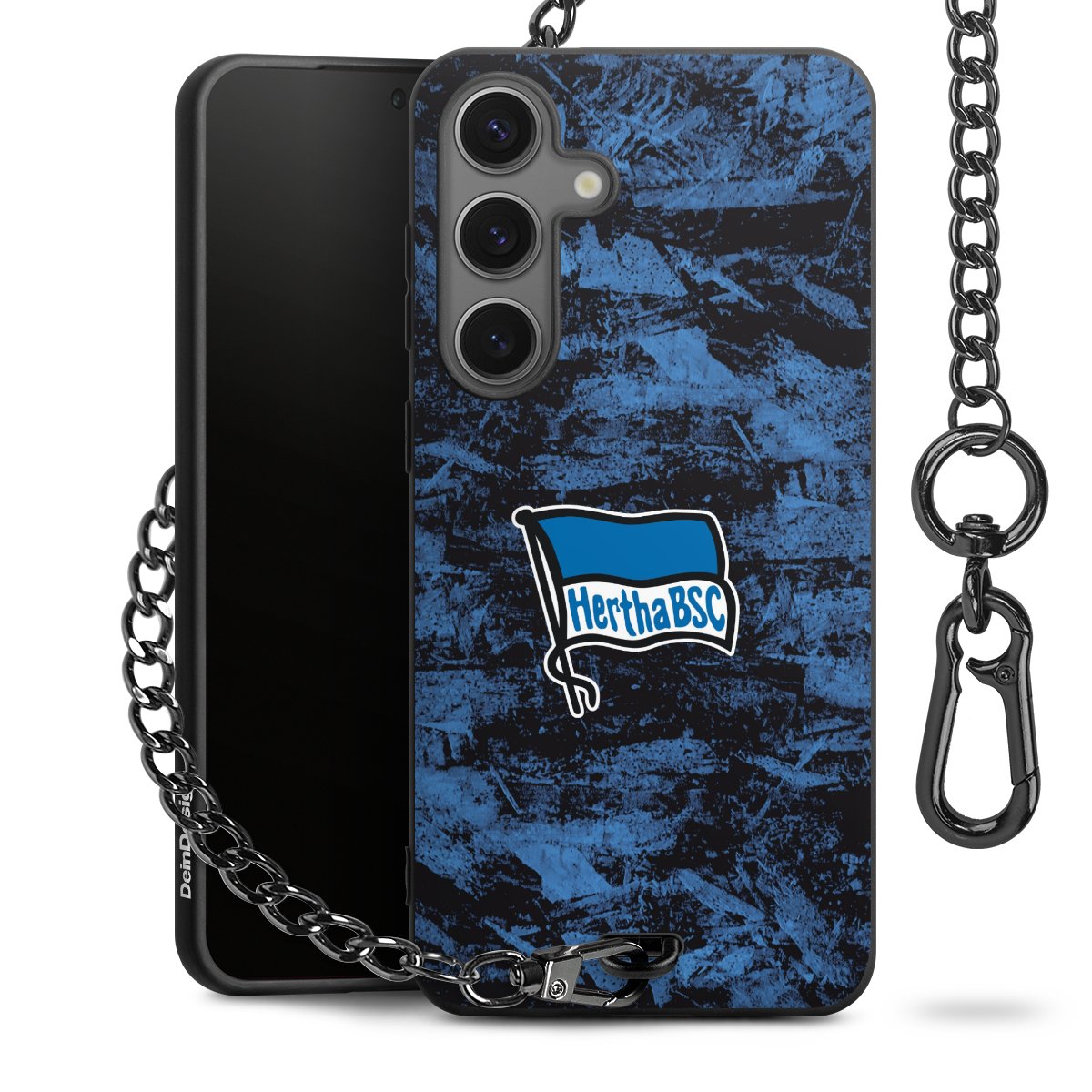 Die mattschwarze Silikon-Handyhülle besteht aus robustem TPU (thermoplastisches Polyurethan). Sie ist flexibel und schützt Dein Smartphone vor Stößen und Kratzern. Die Kette sowie der Karabinerhaken sind aus Metall in Gunmetal-Optik gefertigt. Für dieses Produkt kommen ausschließlich TÜV-geprüfte Materialien zum Einsatz.