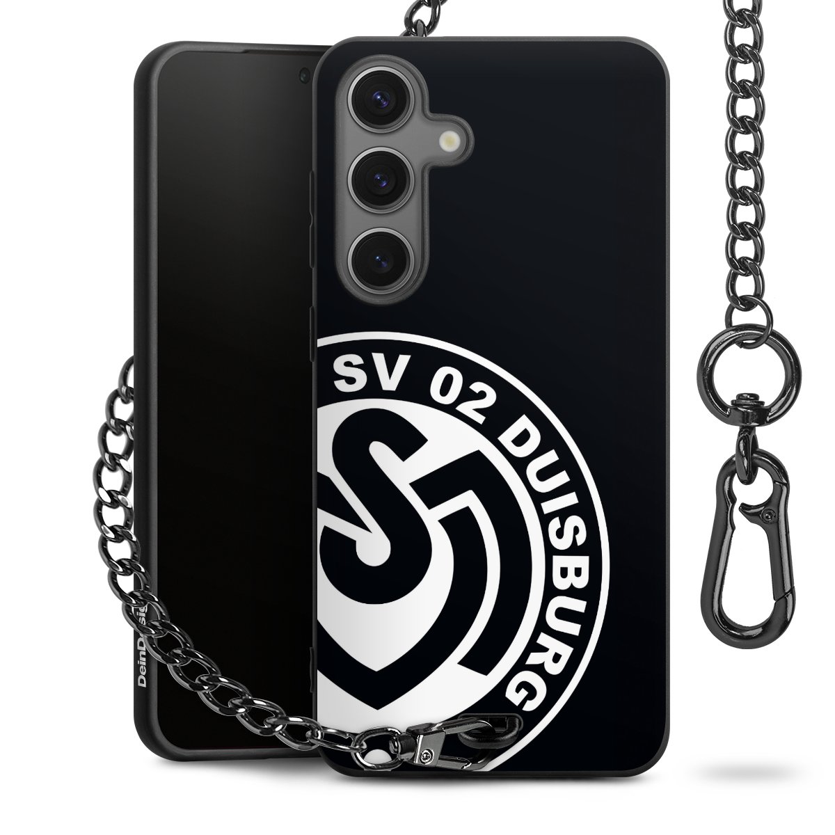 Die mattschwarze Silikon-Handyhülle besteht aus robustem TPU (thermoplastisches Polyurethan). Sie ist flexibel und schützt Dein Smartphone vor Stößen und Kratzern. Die Kette sowie der Karabinerhaken sind aus Metall in Gunmetal-Optik gefertigt. Für dieses Produkt kommen ausschließlich TÜV-geprüfte Materialien zum Einsatz.