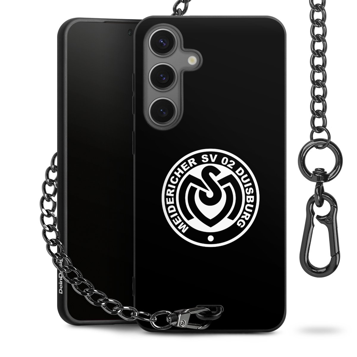 Die mattschwarze Silikon-Handyhülle besteht aus robustem TPU (thermoplastisches Polyurethan). Sie ist flexibel und schützt Dein Smartphone vor Stößen und Kratzern. Die Kette sowie der Karabinerhaken sind aus Metall in Gunmetal-Optik gefertigt. Für dieses Produkt kommen ausschließlich TÜV-geprüfte Materialien zum Einsatz.