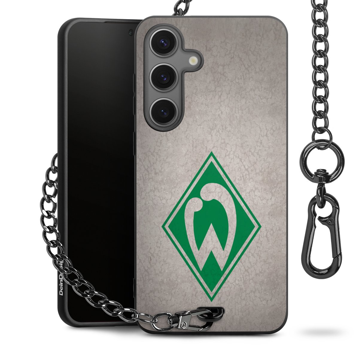 Die mattschwarze Silikon-Handyhülle besteht aus robustem TPU (thermoplastisches Polyurethan). Sie ist flexibel und schützt Dein Smartphone vor Stößen und Kratzern. Die Kette sowie der Karabinerhaken sind aus Metall in Gunmetal-Optik gefertigt. Für dieses Produkt kommen ausschließlich TÜV-geprüfte Materialien zum Einsatz.