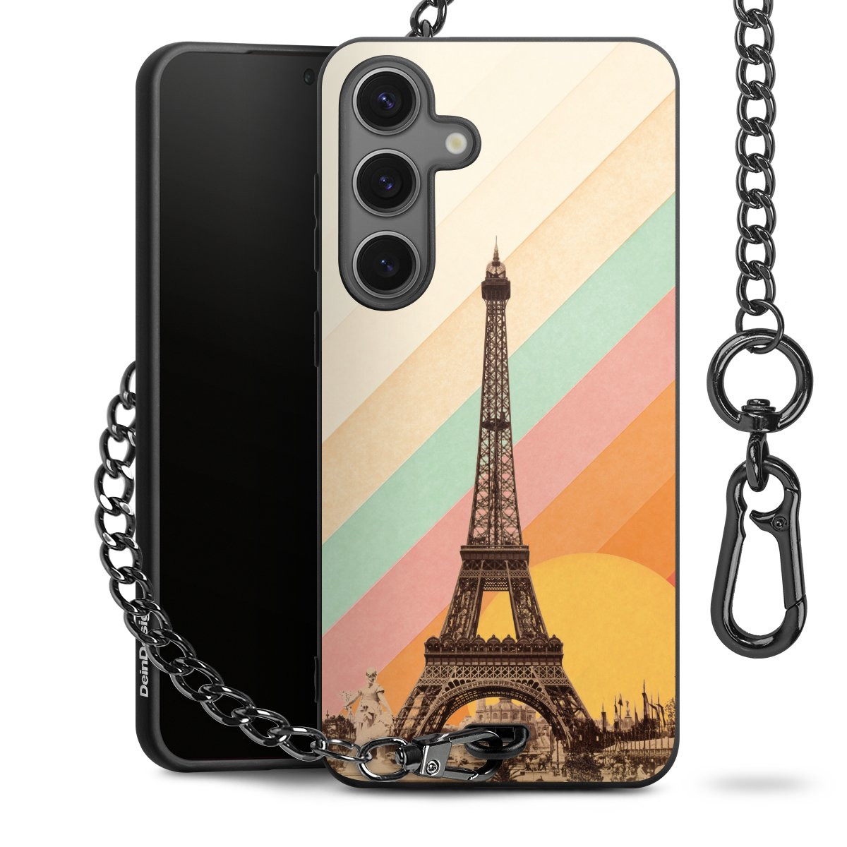 • Mattschwarze Handyhülle mit Metallkette