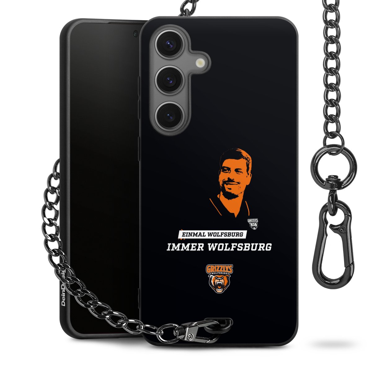 - Mattschwarze Handyhülle mit Metallkette