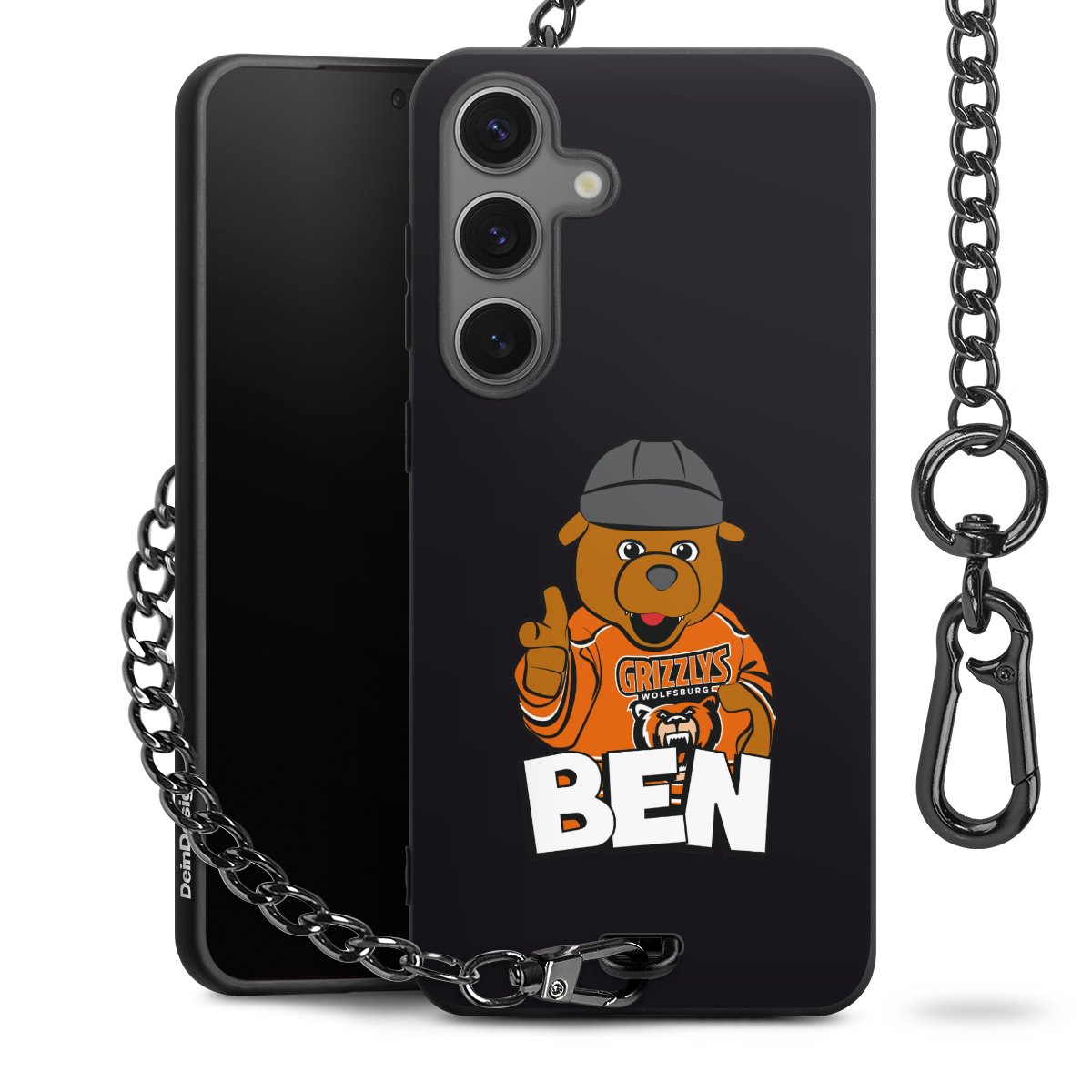 Die mattschwarze Silikon-Handyhülle besteht aus robustem TPU (thermoplastisches Polyurethan). Sie ist flexibel und schützt Dein Smartphone vor Stößen und Kratzern. Die Kette sowie der Karabinerhaken sind aus Metall in Gunmetal-Optik gefertigt. Für dieses Produkt kommen ausschließlich TÜV-geprüfte Materialien zum Einsatz.