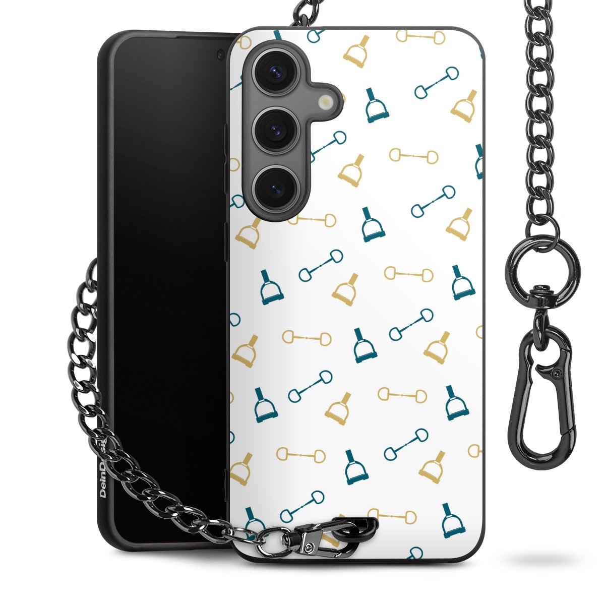 • Mattschwarze Handyhülle mit Metallkette
