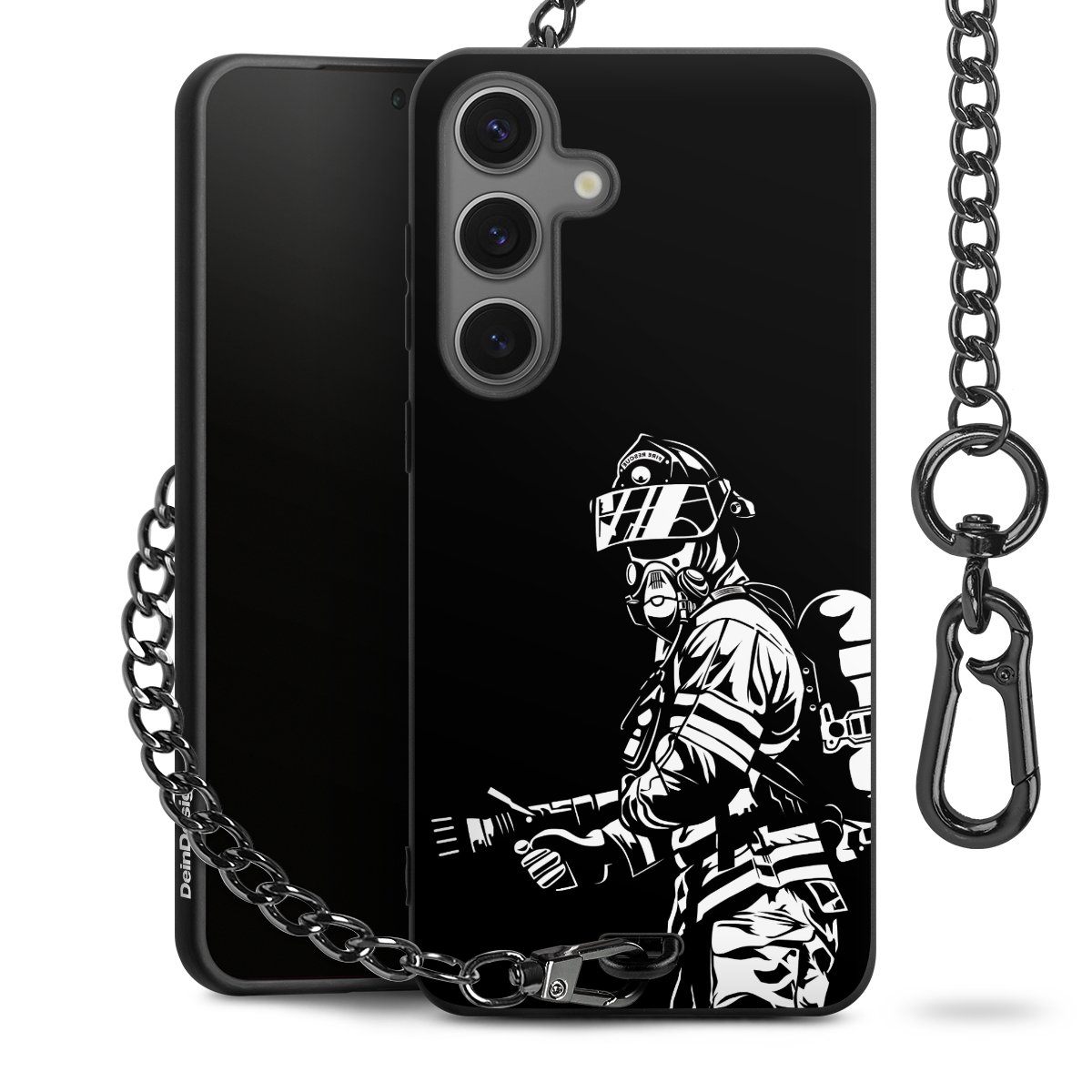 - Mattschwarze Handyhülle mit Metallkette