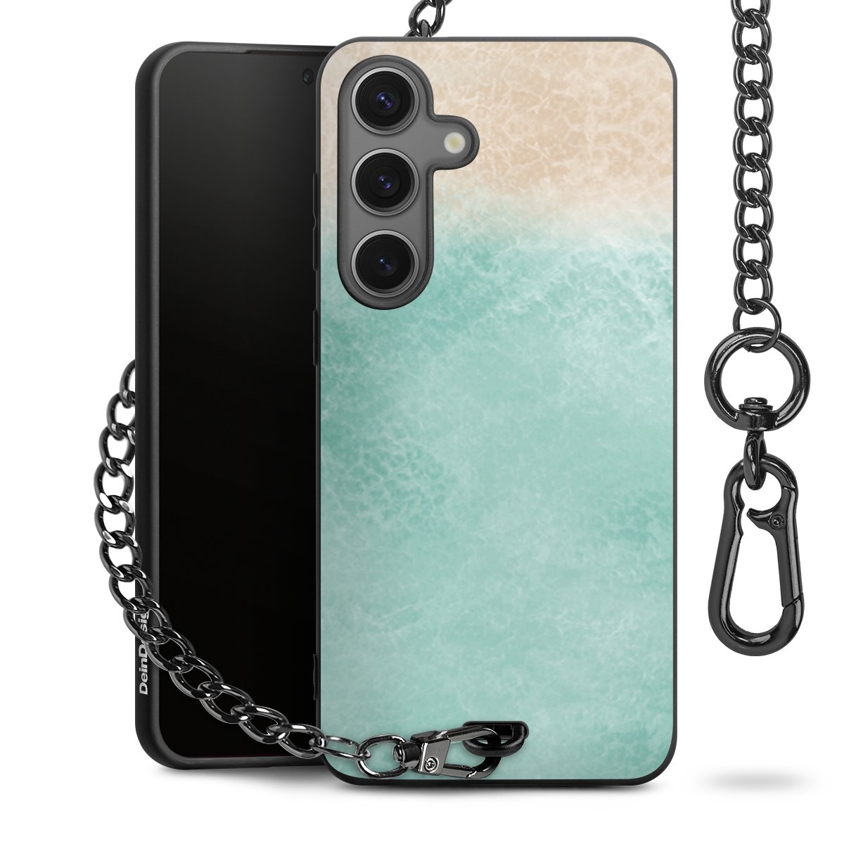 Die mattschwarze Silikon-Handyhülle besteht aus robustem TPU (thermoplastisches Polyurethan). Sie ist flexibel und schützt Dein Smartphone vor Stößen und Kratzern. Die Kette sowie der Karabinerhaken sind aus Metall in Gunmetal-Optik gefertigt. Für dieses Produkt kommen ausschließlich TÜV-geprüfte Materialien zum Einsatz.