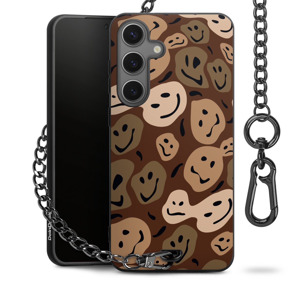 - Mattschwarze Handyhülle mit Metallkette