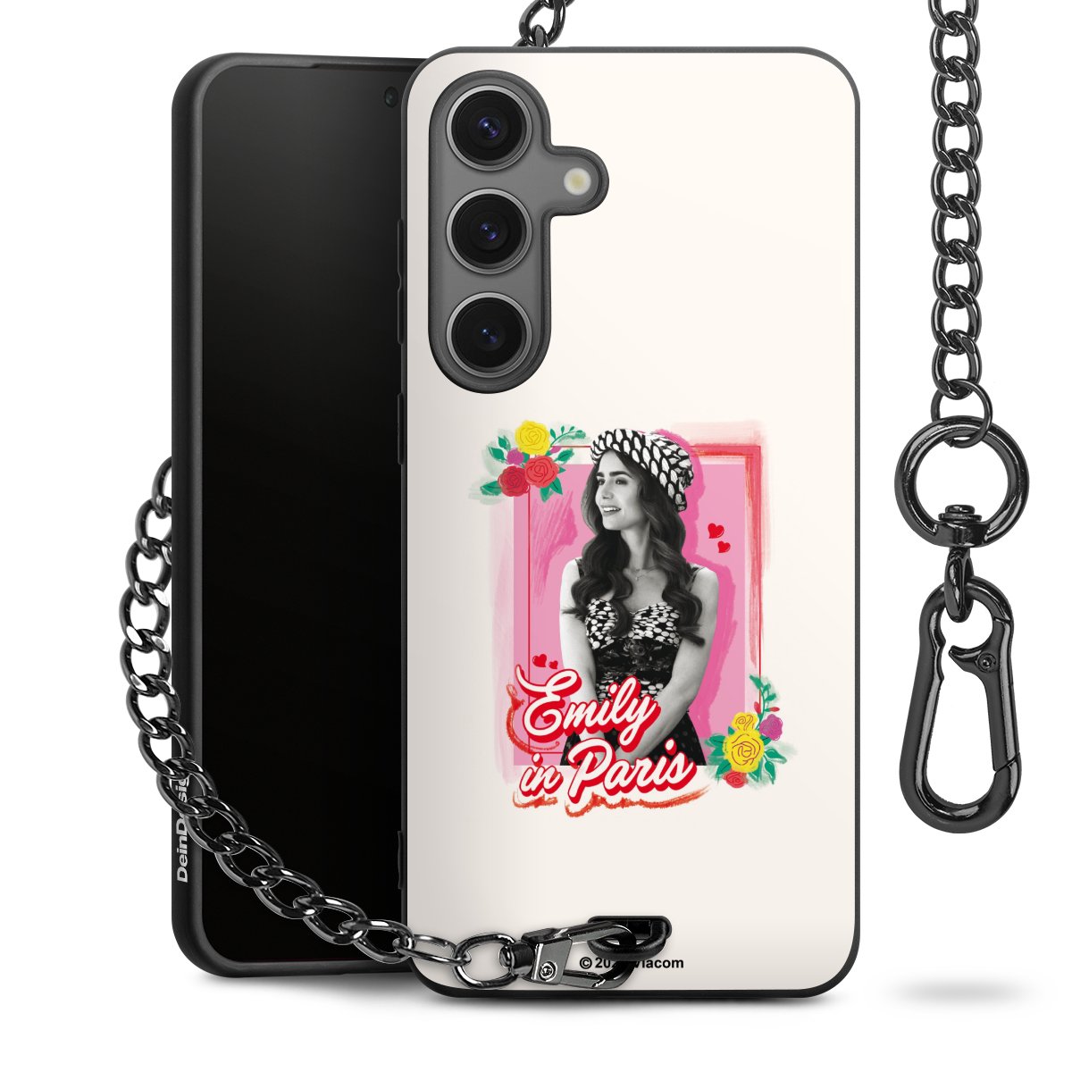 Die Handyhülle verfügt über eine mittig am unteren Rand platzierte Öse, an der die Metallkette stabil befestigt ist. Bestelle die Hülle einfach für Dein Smartphone-Modell, dann passt sie wie angegossen und Du brauchst sie bloß einmal anzudrücken. Handy in die Tasche, Karabiner an den Hosenbund – schon kann die Party starten.