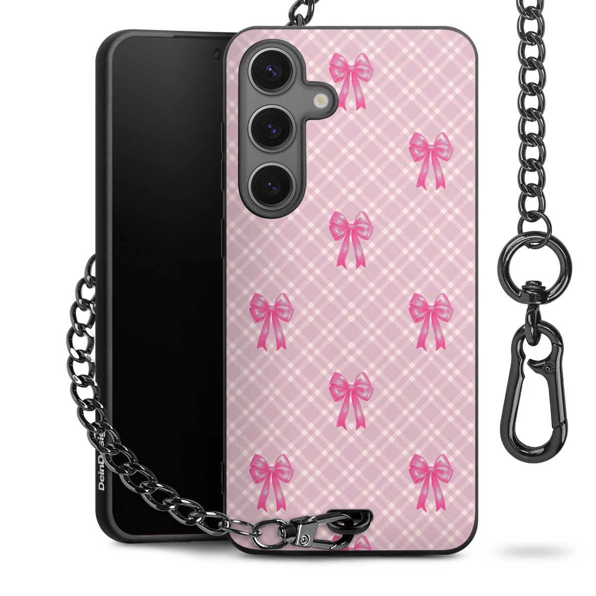 • Mattschwarze Handyhülle mit Metallkette