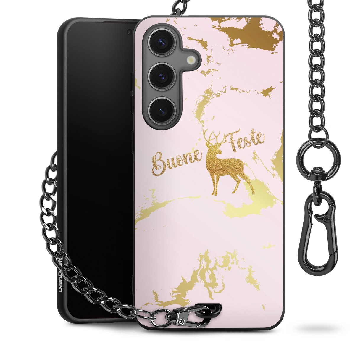 • Mattschwarze Handyhülle mit Metallkette