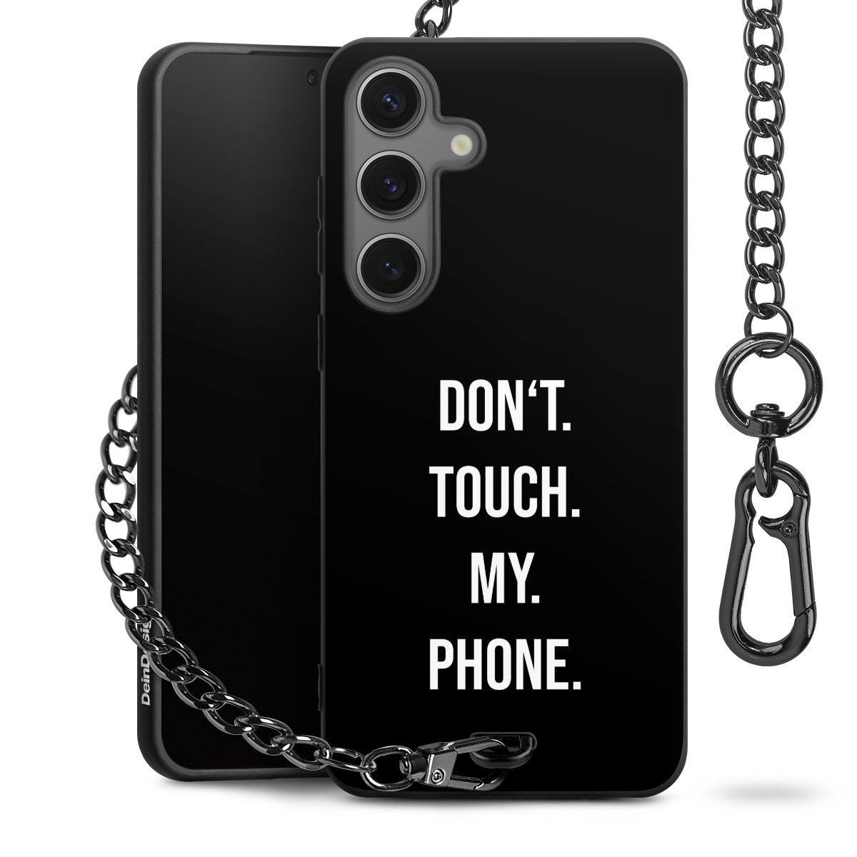 Die mattschwarze Silikon-Handyhülle besteht aus robustem TPU (thermoplastisches Polyurethan). Sie ist flexibel und schützt Dein Smartphone vor Stößen und Kratzern. Die Kette sowie der Karabinerhaken sind aus Metall in Gunmetal-Optik gefertigt. Für dieses Produkt kommen ausschließlich TÜV-geprüfte Materialien zum Einsatz.