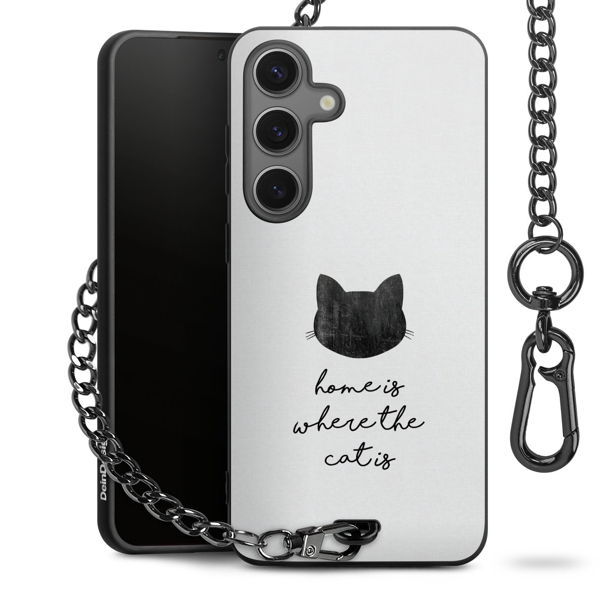 Die mattschwarze Silikon-Handyhülle besteht aus robustem TPU (thermoplastisches Polyurethan). Sie ist flexibel und schützt Dein Smartphone vor Stößen und Kratzern. Die Kette sowie der Karabinerhaken sind aus Metall in Gunmetal-Optik gefertigt. Für dieses Produkt kommen ausschließlich TÜV-geprüfte Materialien zum Einsatz.