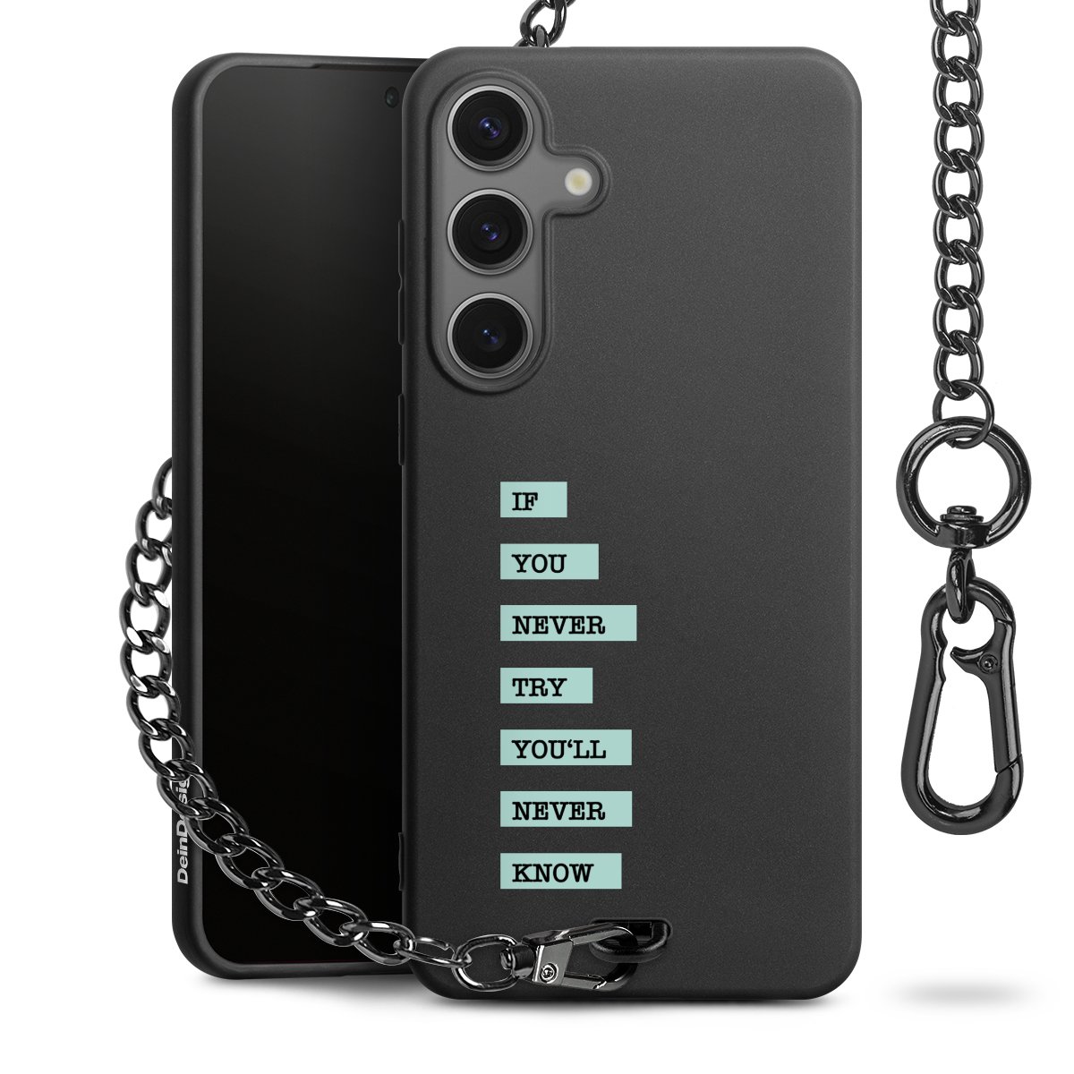 - Mattschwarze Handyhülle mit Metallkette