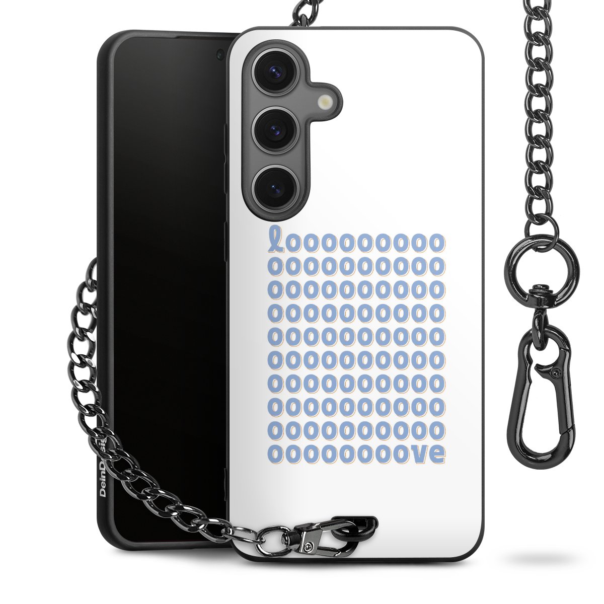 Die Handyhülle verfügt über eine mittig am unteren Rand platzierte Öse, an der die Metallkette stabil befestigt ist. Bestelle die Hülle einfach für Dein Smartphone-Modell, dann passt sie wie angegossen und Du brauchst sie bloß einmal anzudrücken. Handy in die Tasche, Karabiner an den Hosenbund – schon kann die Party starten.