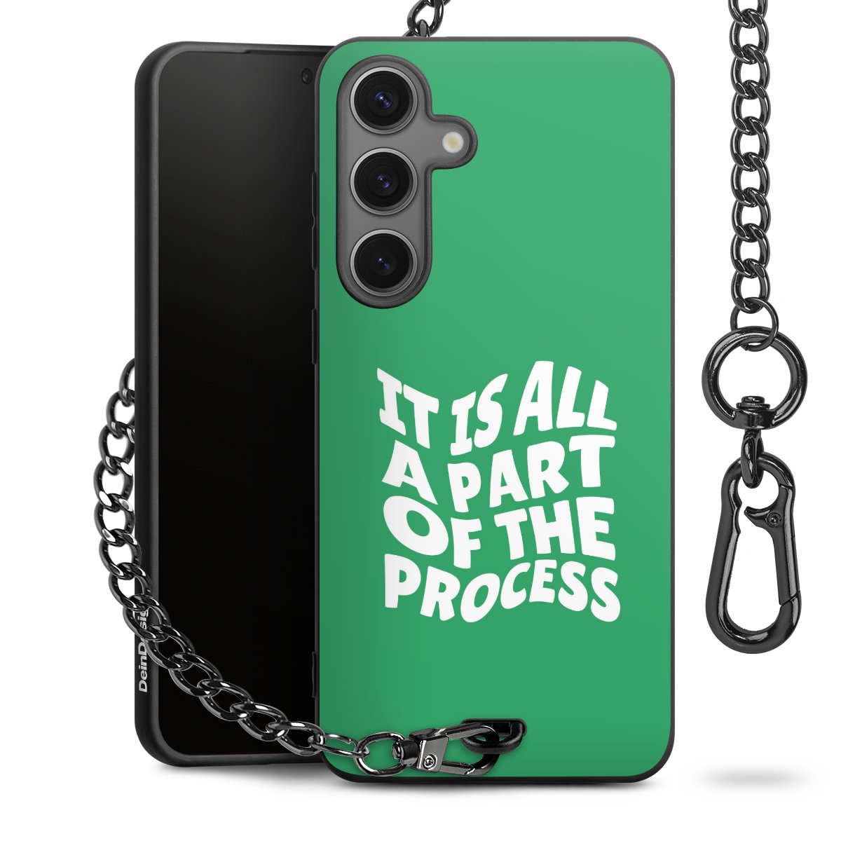 Die mattschwarze Silikon-Handyhülle besteht aus robustem TPU (thermoplastisches Polyurethan). Sie ist flexibel und schützt Dein Smartphone vor Stößen und Kratzern. Die Kette sowie der Karabinerhaken sind aus Metall in Gunmetal-Optik gefertigt. Für dieses Produkt kommen ausschließlich TÜV-geprüfte Materialien zum Einsatz.