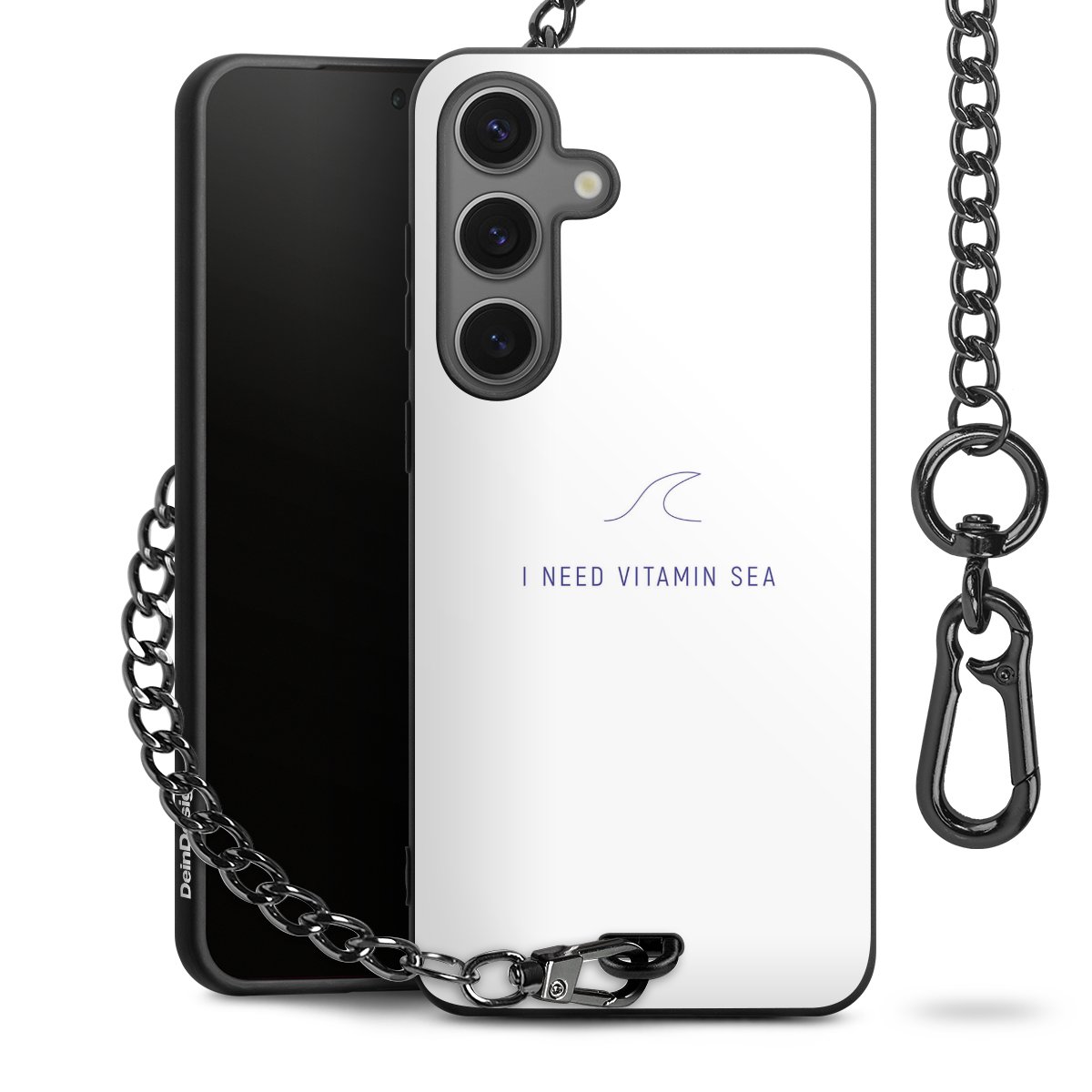 - Mattschwarze Handyhülle mit Metallkette