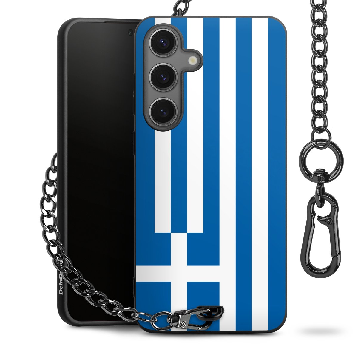 Die mattschwarze Silikon-Handyhülle besteht aus robustem TPU (thermoplastisches Polyurethan). Sie ist flexibel und schützt Dein Smartphone vor Stößen und Kratzern. Die Kette sowie der Karabinerhaken sind aus Metall in Gunmetal-Optik gefertigt. Für dieses Produkt kommen ausschließlich TÜV-geprüfte Materialien zum Einsatz.