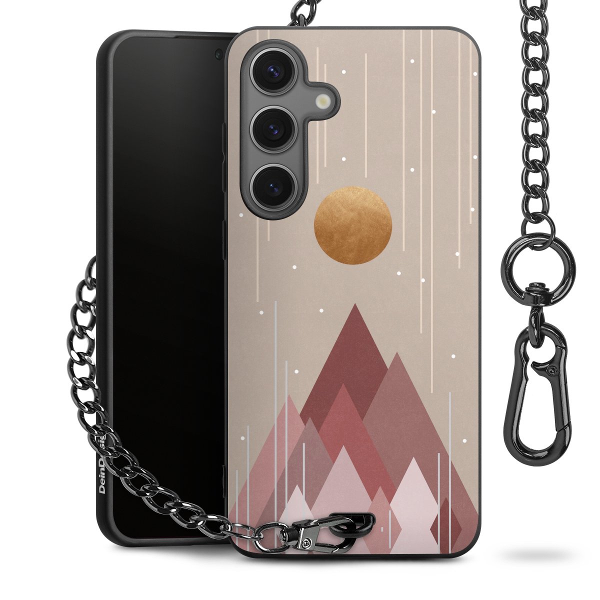 • Mattschwarze Handyhülle mit Metallkette