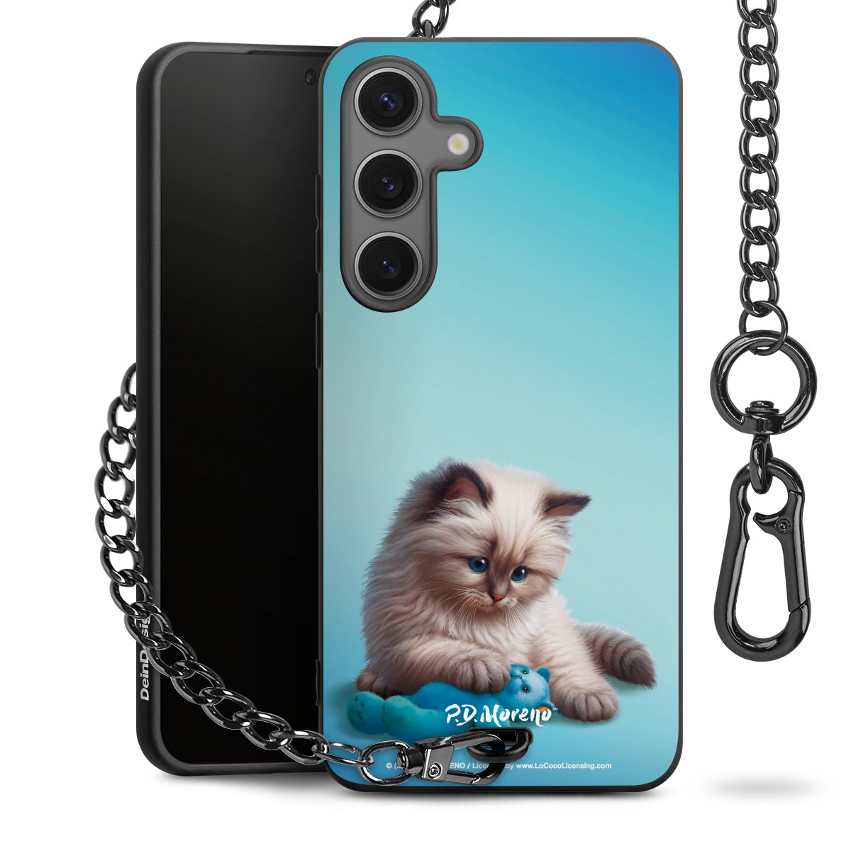 Die mattschwarze Silikon-Handyhülle besteht aus robustem TPU (thermoplastisches Polyurethan). Sie ist flexibel und schützt Dein Smartphone vor Stößen und Kratzern. Die Kette sowie der Karabinerhaken sind aus Metall in Gunmetal-Optik gefertigt. Für dieses Produkt kommen ausschließlich TÜV-geprüfte Materialien zum Einsatz.