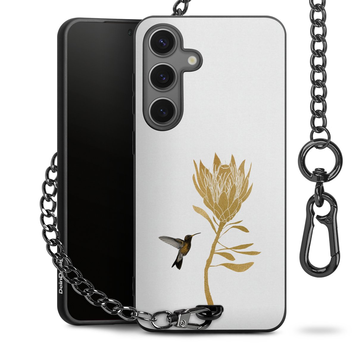 • Mattschwarze Handyhülle mit Metallkette