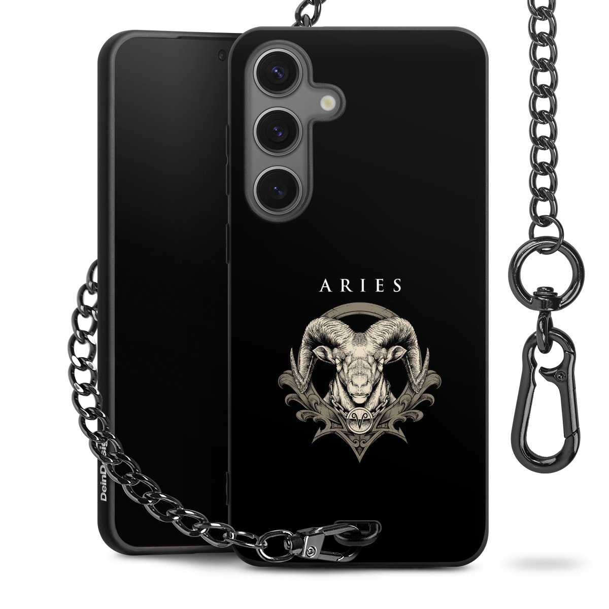Die mattschwarze Silikon-Handyhülle besteht aus robustem TPU (thermoplastisches Polyurethan). Sie ist flexibel und schützt Dein Smartphone vor Stößen und Kratzern. Die Kette sowie der Karabinerhaken sind aus Metall in Gunmetal-Optik gefertigt. Für dieses Produkt kommen ausschließlich TÜV-geprüfte Materialien zum Einsatz.