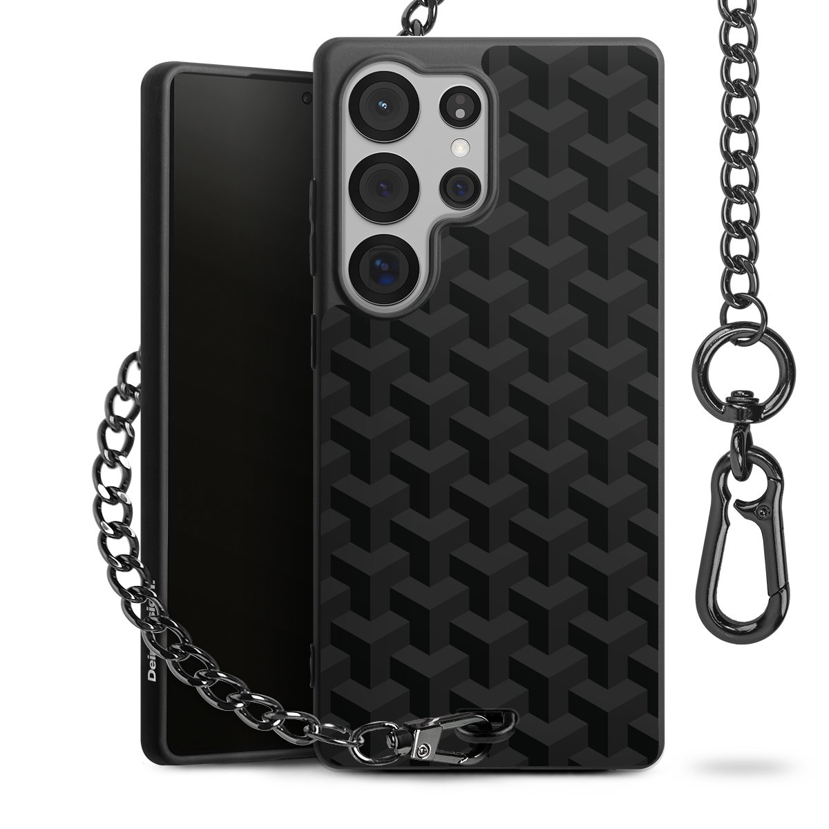 - Mattschwarze Handyhülle mit Metallkette
