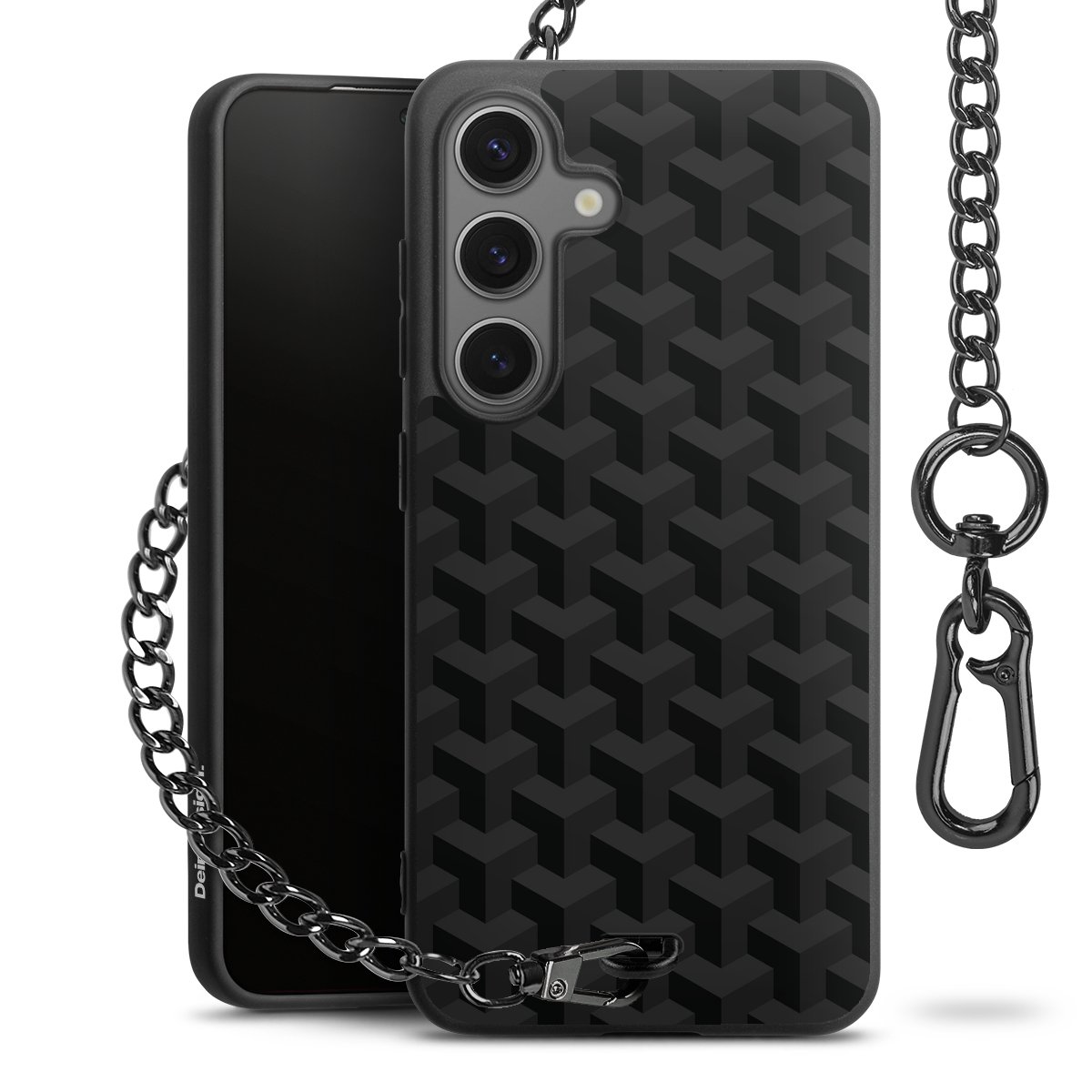 - Mattschwarze Handyhülle mit Metallkette
