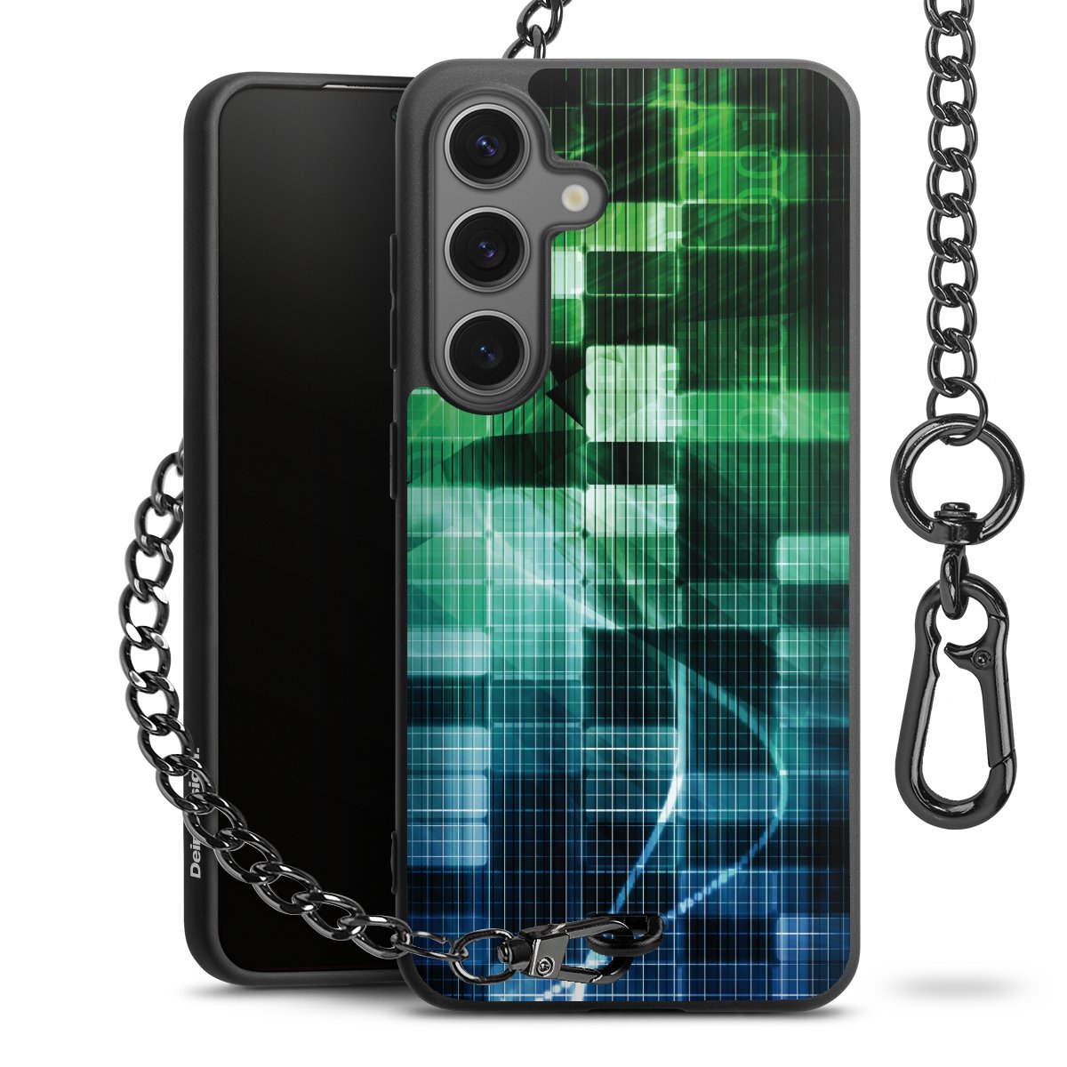 - Mattschwarze Handyhülle mit Metallkette