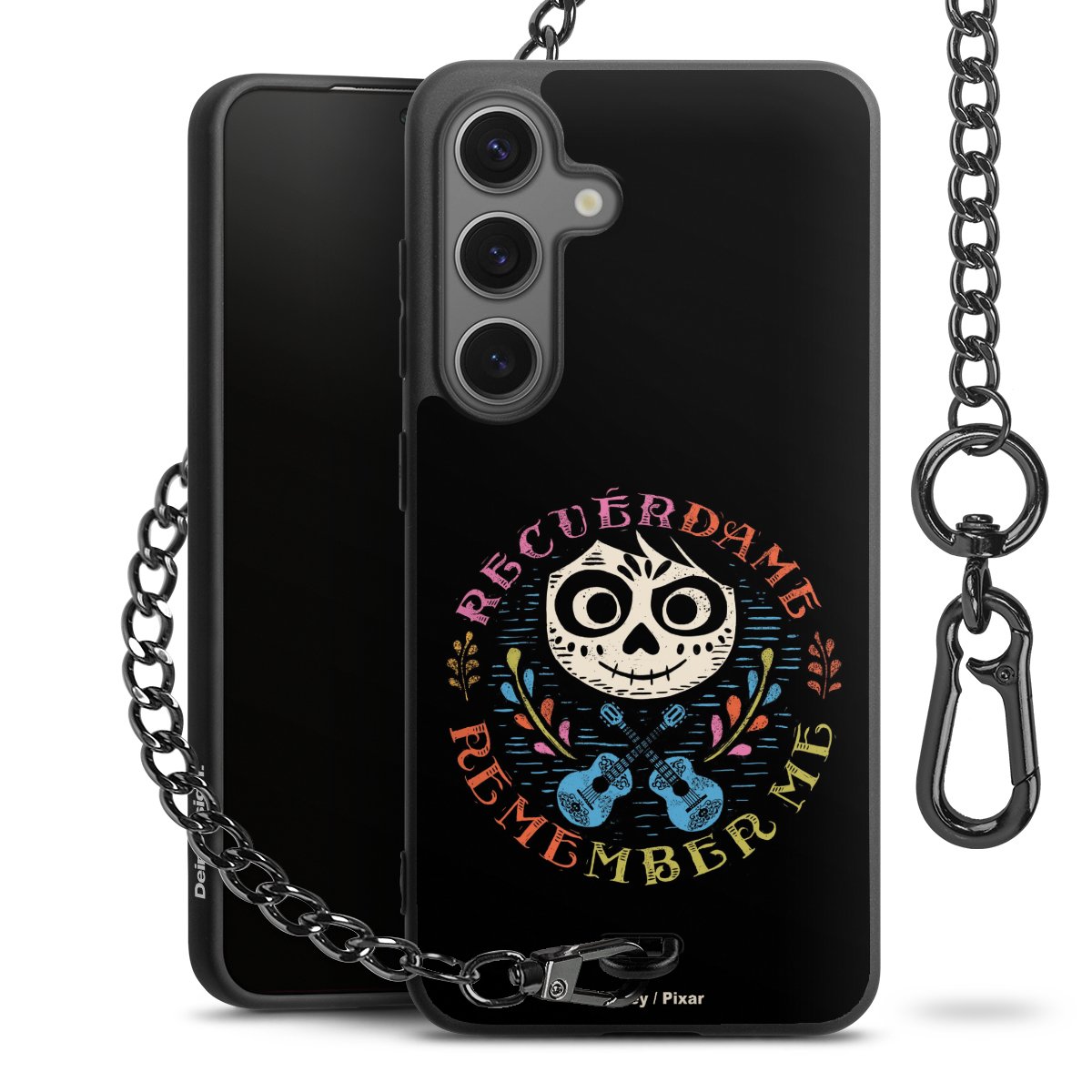 - Mattschwarze Handyhülle mit Metallkette